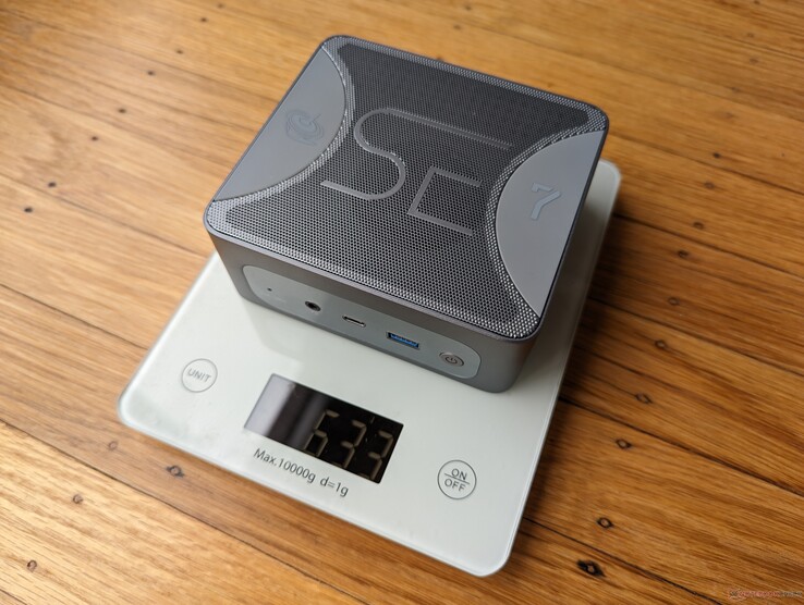 Het apparaat is zowel zwaarder als dikker dan oudere Beelink SER of SEI modellen vanwege de nieuwe geïntegreerde verdampingskamer. Het is niet zo groot als de GTR of GTI serie, maar de toename in grootte is toch merkbaar in vergelijking met traditionele Intel NUC's.