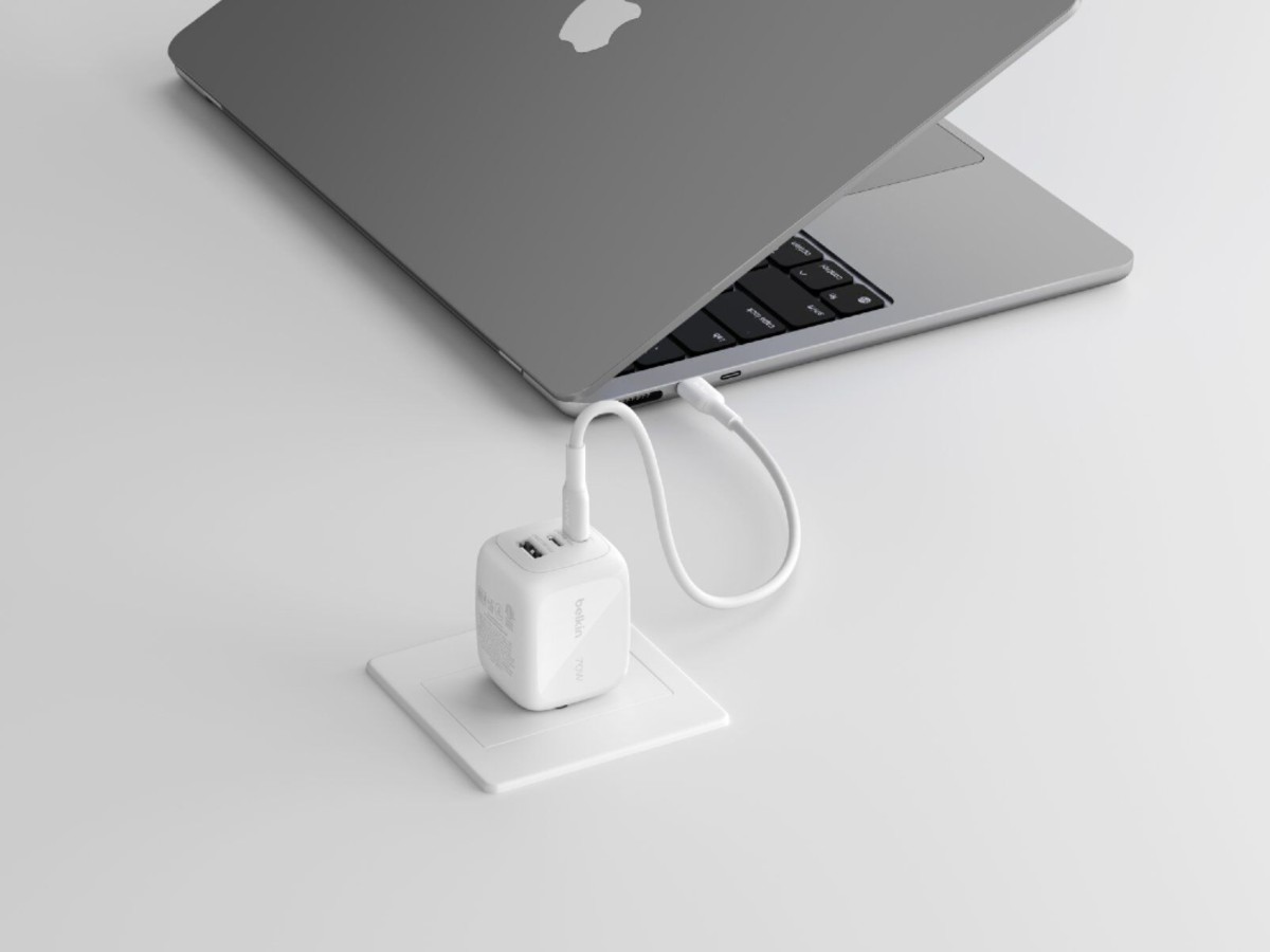 Zoals vermeld kan de Belkin-adapter 70 W leveren via de twee USB-C-poorten en extra USB-A, vergelijkbaar met de Anker 70W 3-poorts oplader. Elke USB-C poort kan de volledige 70W leveren, waarbij het vermogen wordt gesplitst in 45W/25W of 45W/22.5W wanneer twee apparaten zijn aangesloten, en 45W/12W/12W wanneer alle drie de poorten in gebruik zijn. In de praktijk betekent dit dat een notebook zoals de 15-inch M4 MacBook Air en tegelijkertijd twee andere gadgets opladen.