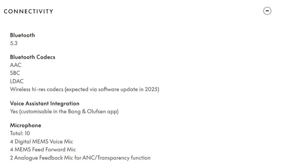 Op dezelfde manier heeft het bedrijf zijn productblad bijgewerkt om de belofte weg te laten dat er dit jaar via een software-update multipoint-connectiviteit met 3 apparaten zal worden toegevoegd. Het zou ons dus niet verbazen als Bang & Olufsen deze belofte binnenkort ook stilletjes laat vallen zonder verdere opheldering.