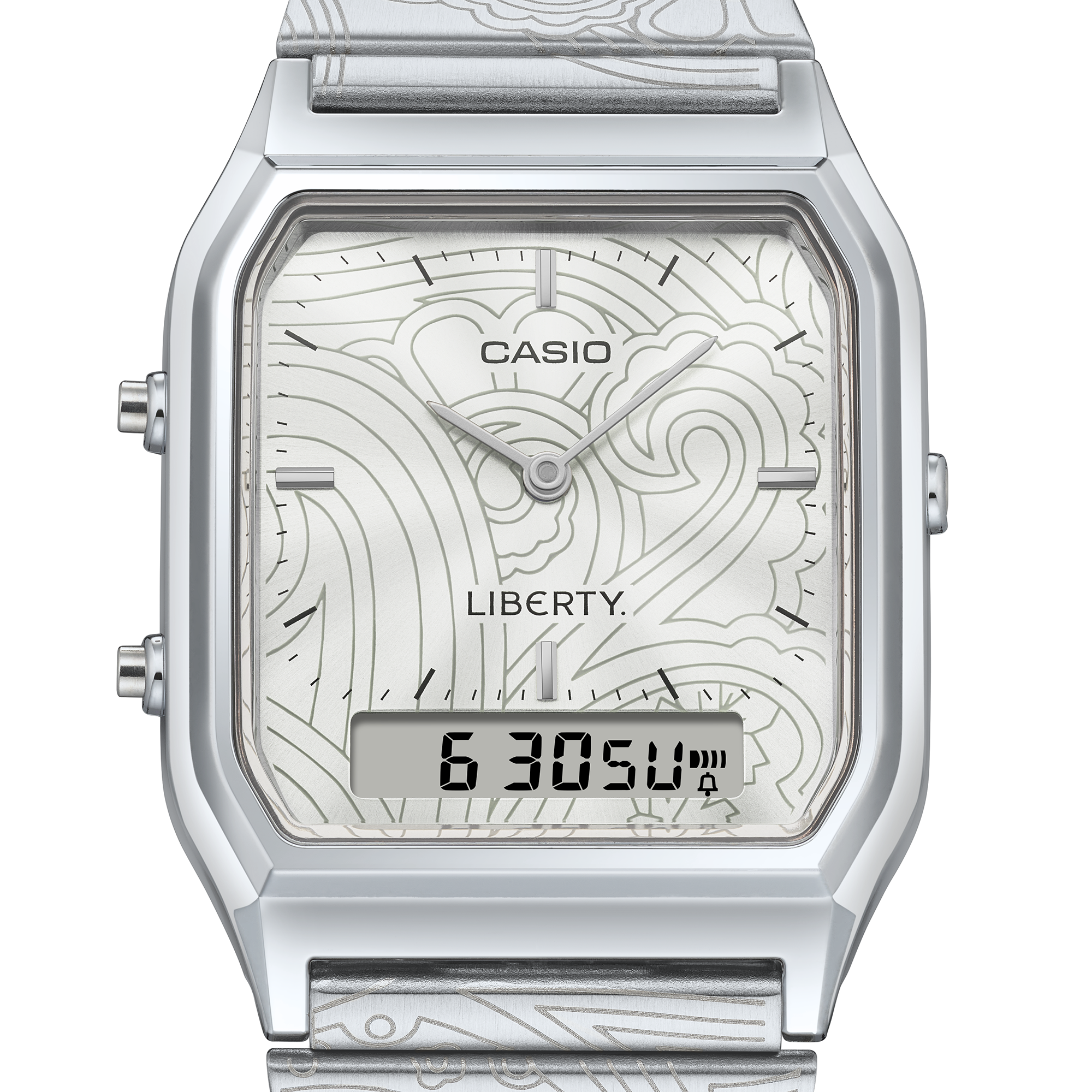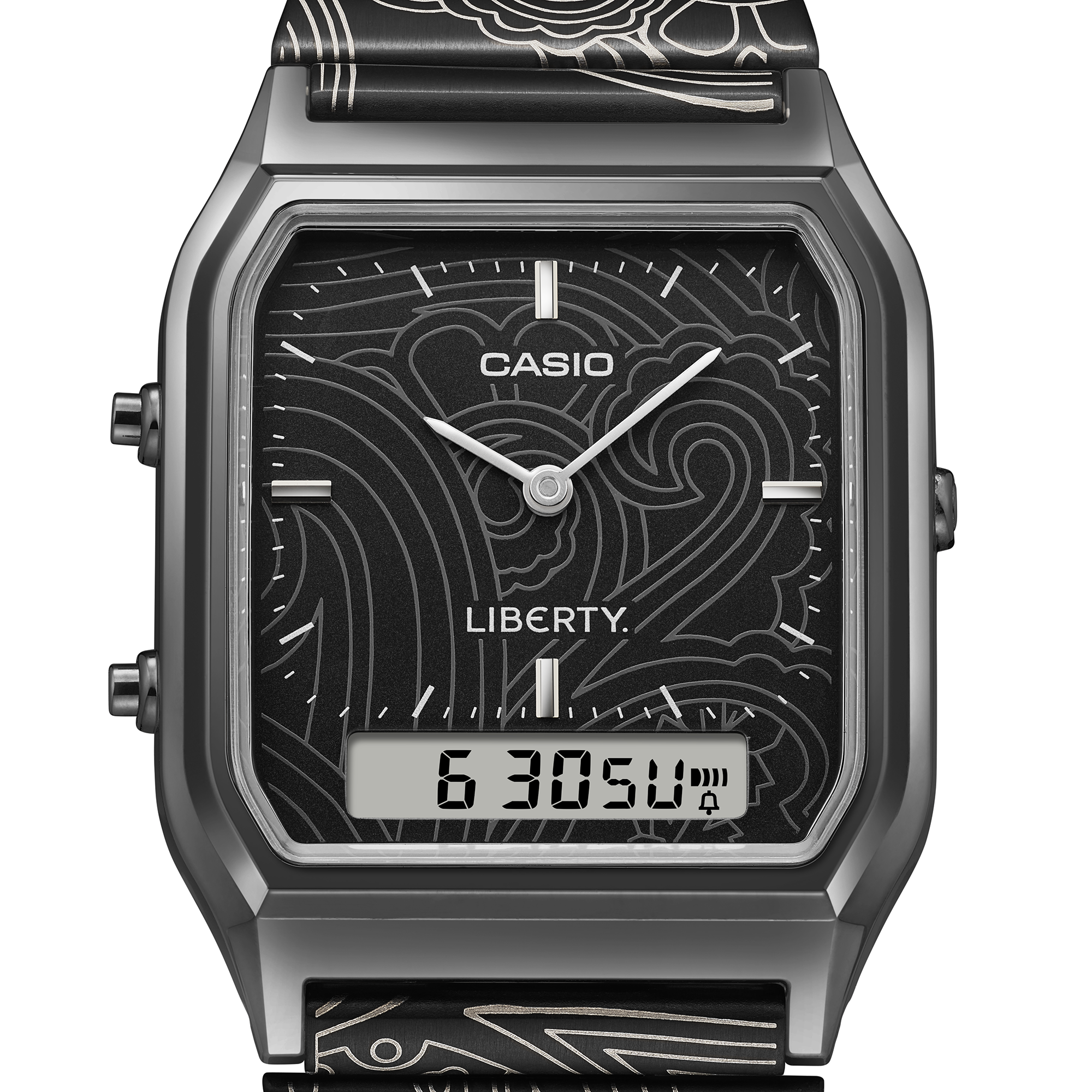 Casio's Vintage x Liberty-horloges hebben de iconische Paisley Fanfare-print van het Britse merk met lasergegraveerd op de wijzerplaat en band. Elk horloge heeft een behuizing van verguld hars van 38,8 x 29,8 x 8,1 mm (~1,5 x 1,2 x 0,3 inch) en wordt geleverd met een roestvrijstalen band. De batterij zou ongeveer drie jaar moeten meegaan en het horloge wordt ook als waterbestendig verkocht.
