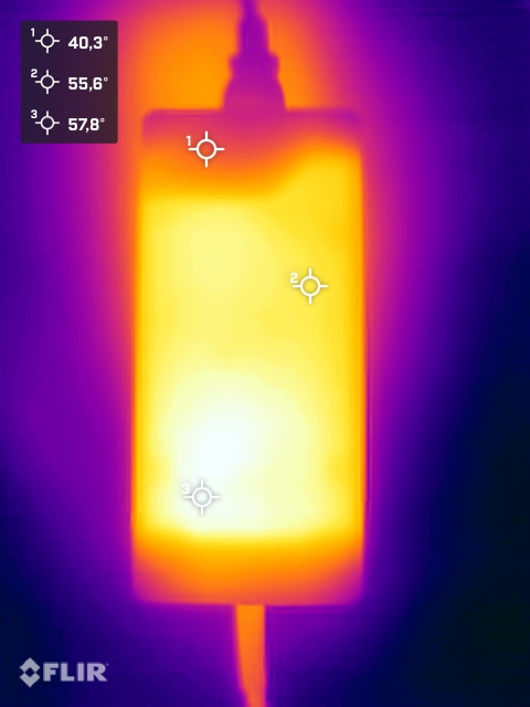 (±) Bij onbelast gebruik bedraagt de gemiddelde temperatuur voor de bovenzijde 34.6 °C / 94 F, vergeleken met het apparaatgemiddelde van 32.5 °C / 91 F.