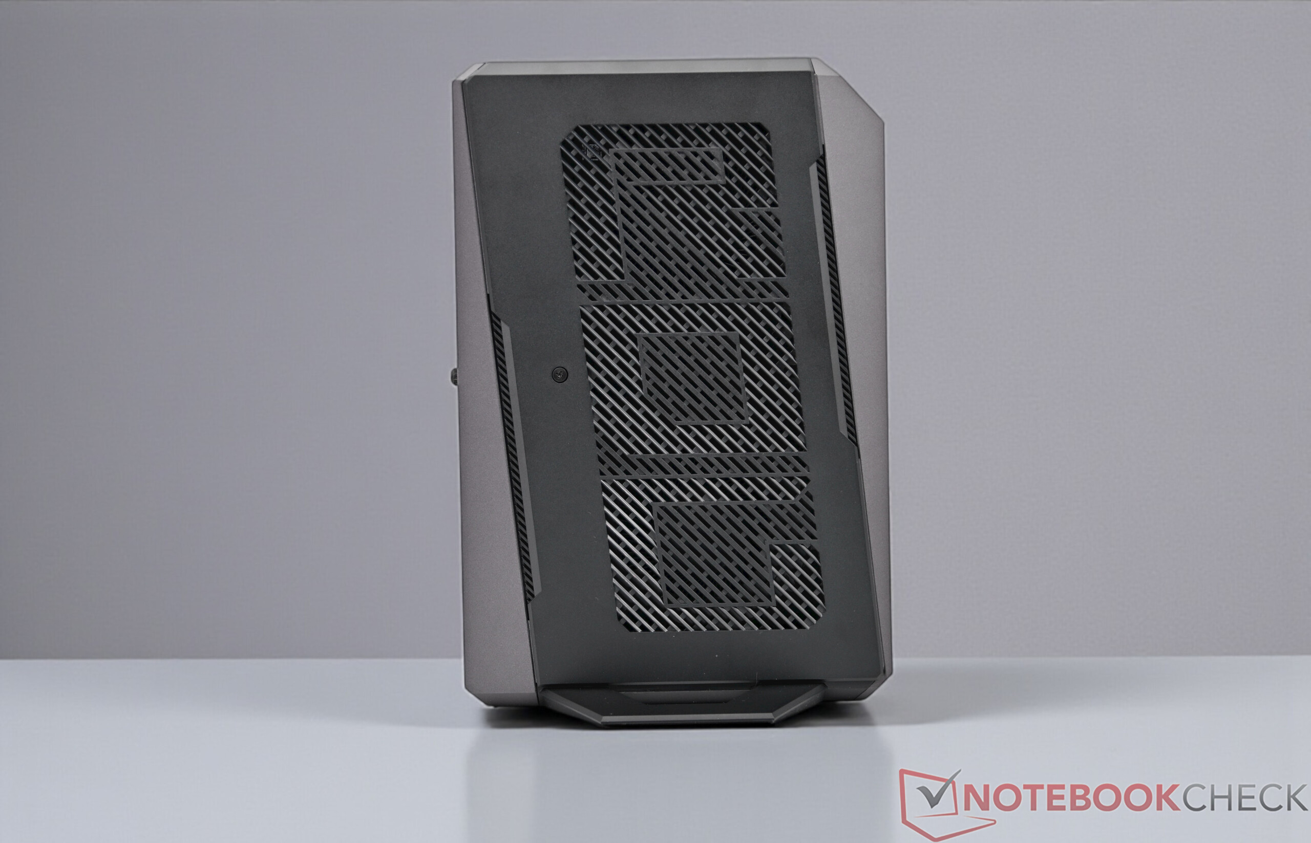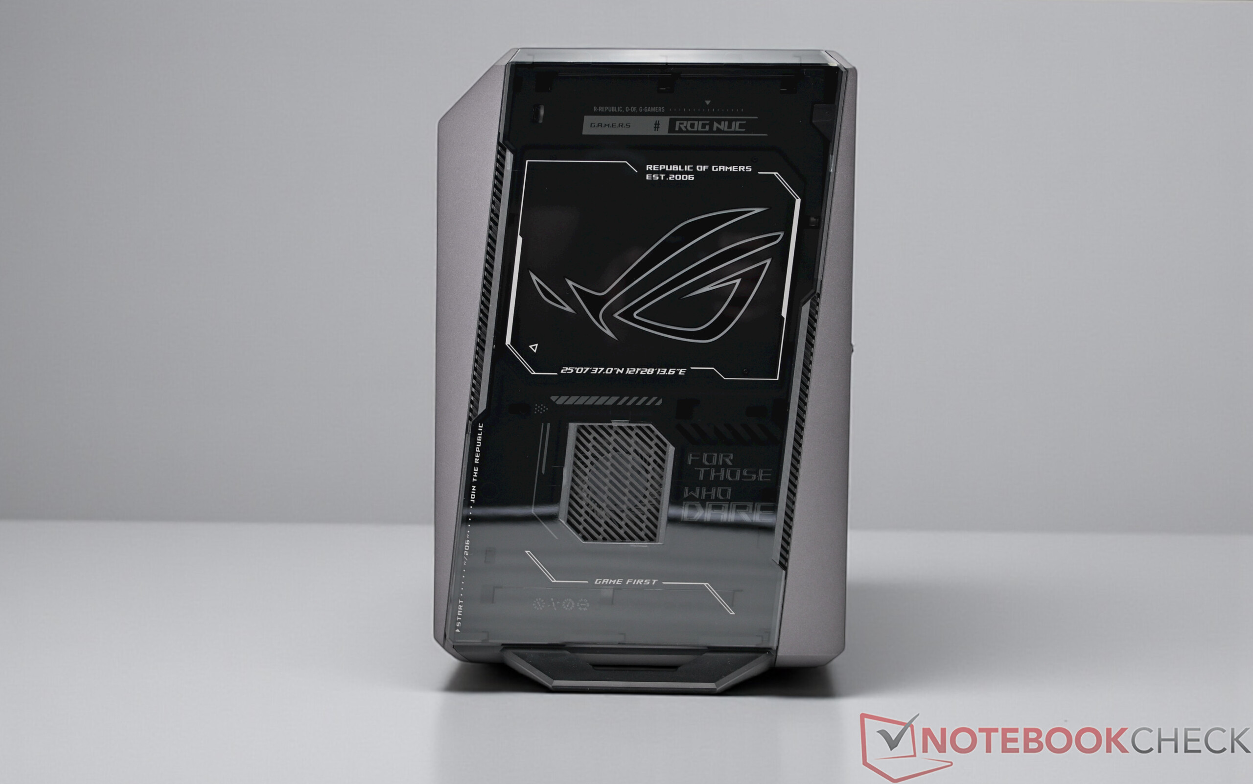 De Asus ROG NUC 15 combineert een compact ontwerp met krachtige koeling en solide vakmanschap. Hoewel de behuizing iets groter is, blijft de ROG NUC 15 ruimtebesparend en flexibel. Hij kan verticaal worden opgesteld, wat ook de luchtcirculatie ten goede komt. De behuizing combineert plastic aan de buitenkant met stevig metaal aan de binnenkant, terwijl het verlichte ROG-logo met Aura Sync voor accenten zorgt. Met ongeveer 3,0 kg is de mini PC een van de zwaardere modellen, maar biedt nog steeds een geslaagde balans tussen prestaties, ontwerp en bruikbaarheid.