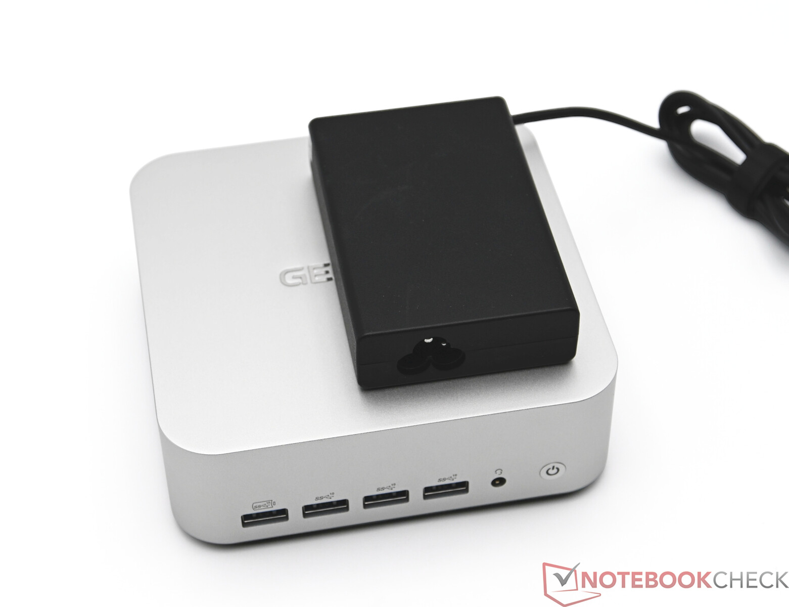 De Geekom A8 Max met de Ryzen 7 8845HS bleek tijdens het testen zeer energiezuinig te zijn. Zelfs in ruststand is het energieverbruik indrukwekkend laag, vergelijkbaar met dat van de kleinere Geekom A8. Onder volledige belasting is het gemiddelde 68 watt, met pieken tot 97,7 watt. In termen van efficiëntie plaatst dit hem op de derde plaats, alleen de Geekom A8 en Khadas Mind 2 presteren beter. De 120-watt voeding heeft de juiste afmetingen voor het systeem.