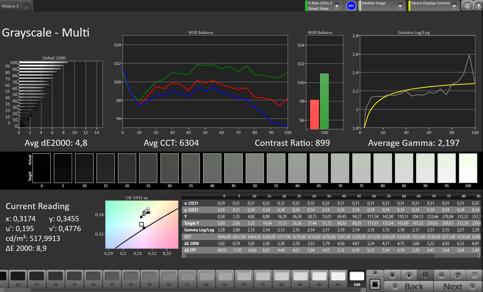 (±) | lineariteit van de middentonen is gemiddeld (9.6% delta ten opzichte van de vorige frequentie)