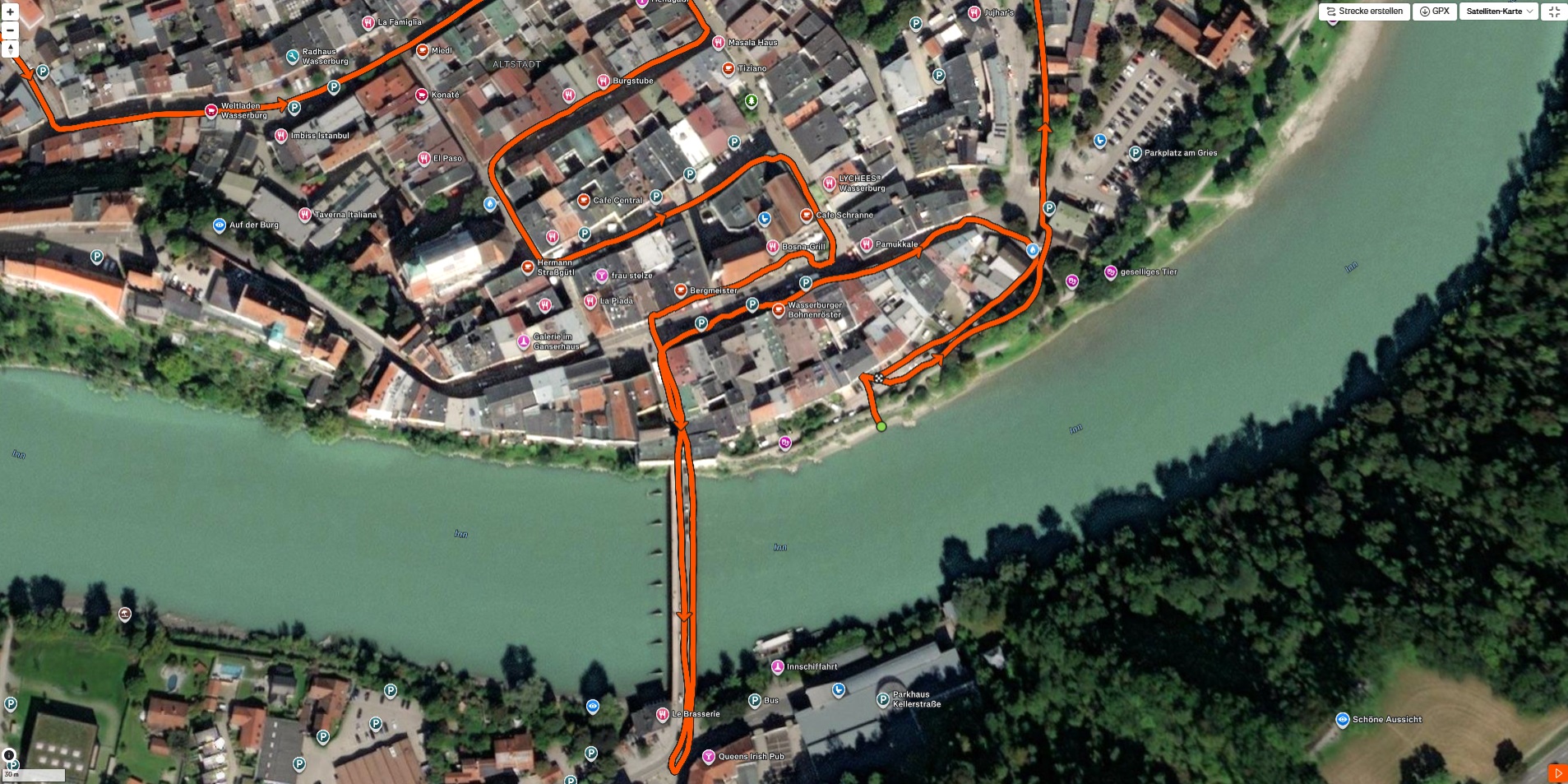 Onze fietstocht laat een goede, zij het niet volledig nauwkeurige plaatsbepaling op wegen en paden zien. Het tablet kan zonder grote beperkingen voor navigatie worden gebruikt.