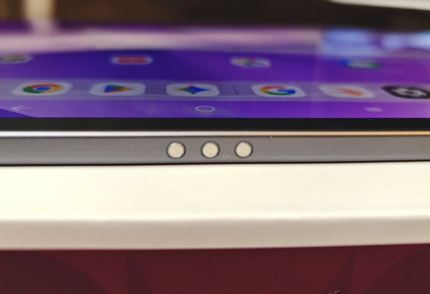 Met 7 millimeter (~0.3 in) zijn de schermranden vrij smal, maar de tablet kan nog steeds goed worden vastgehouden en bediend.