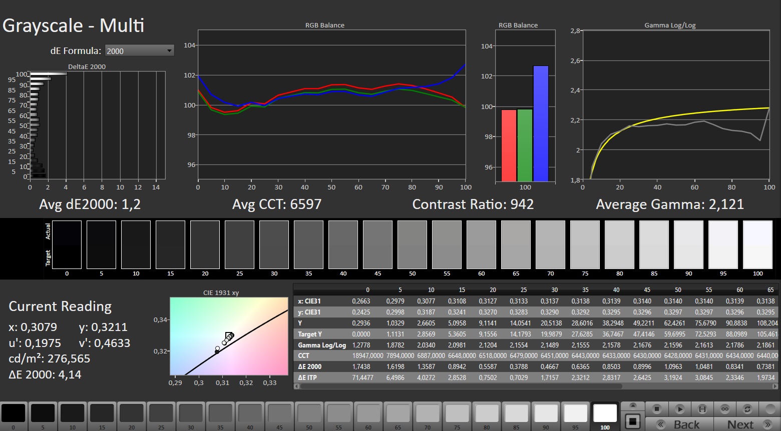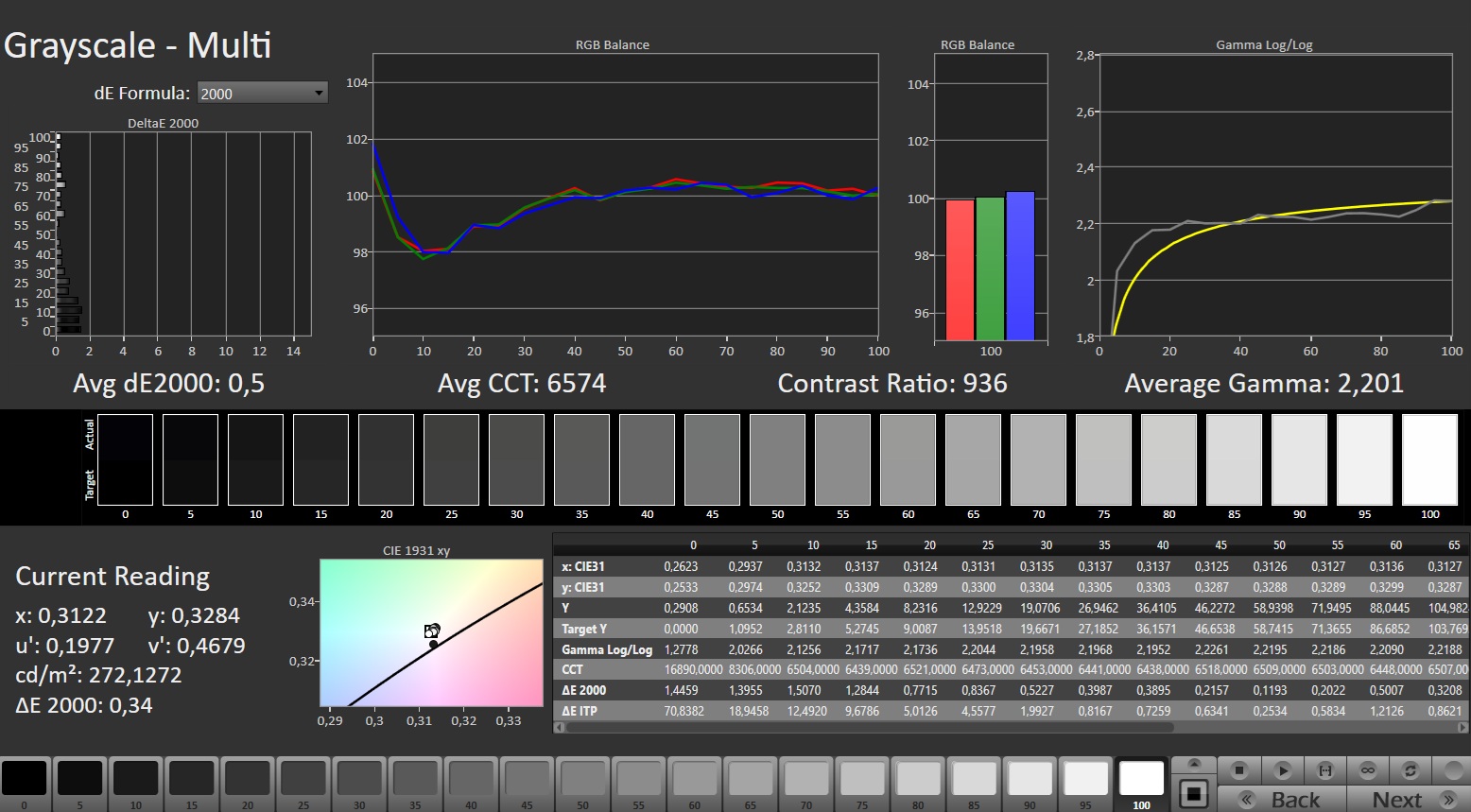 ΔE Greyscale Calman: 1.2 | ∀{0.09-98 Ø5}