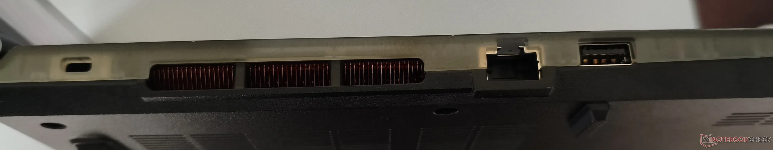 De selectie van poorten is niet bijzonder royaal. Drie USB-poorten voelen nogal beperkt aan, vooral omdat MSI ondersteuning voor USB 4 en Thunderbolt heeft weggelaten. Aan de positieve kant ondersteunt de beschikbare USB-C poort Power Delivery en DisplayPort. Externe beeldschermen kunnen ook rechtstreeks via HDMI worden aangesloten. Het pakket wordt gecompleteerd door een audio-aansluiting, een RJ45-poort en een Kensington-slot.