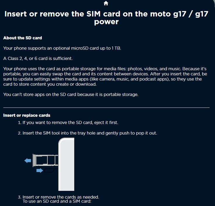 Interessant genoeg heeft het merk zelf een van de kernspecificaties bevestigd via de ondersteuningssite. Op een officiële FAQ-pagina https://en-us.support.motorola.com/app/answers/detail/a_id/190691/~/insert-or-remove-the-sim%2Fsd-card---moto-g17-%2F-g17-power voor de Moto G17 meldt dat de telefoon een microSD-kaartsleuf heeft met ondersteuning voor een geheugenkaart van maximaal 1 TB. Deze pagina bevestigt verder dat Motorola een G17 Power-model zal aanbieden naast de niet-Power-variant, maar er zijn geen concrete details beschikbaar over de Power-variant.