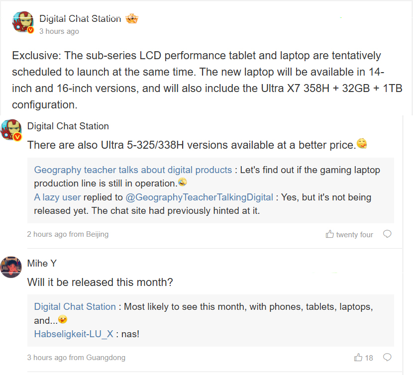 De betrouwbare leaker meldt dat het bedrijf werkt aan 14-inch en 16-inch versies van een RedmiBook laptop. Hoewel de leaker geen gedetailleerde specificaties deelde, vermeldt het rapport dat er een Core Ultra X7 358H configuratie beschikbaar zal zijn. Dit is een zeer capabele Panther Lake processor met de zeer capabele Intel Arc B390 iGPU.