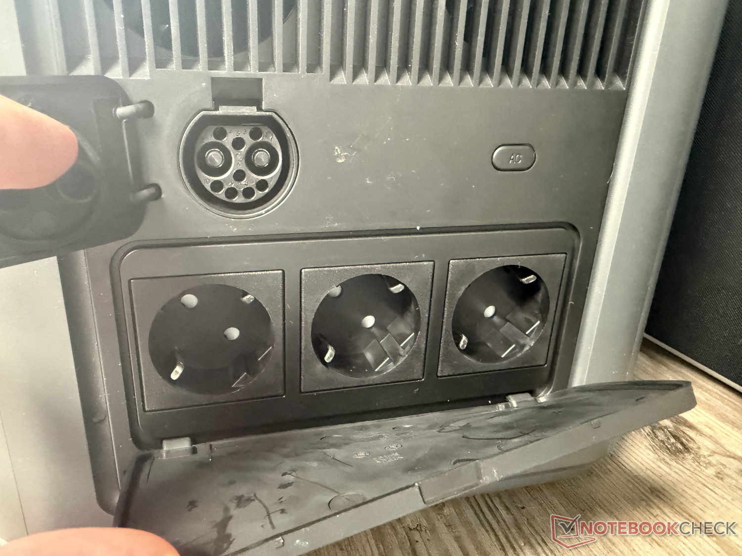 Hoewel het thema van de app een ramp is, maakt de hardware zelf een solide indruk. De afwerking is degelijk. Het is bijvoorbeeld praktisch dat de AC-aansluitingen aan de zijkant achter een rubberen flap zitten. Dit beschermt ze tegen opspattend water, ook al maakt de klep zelf de toegang tot de aansluitingen wat moeilijker.