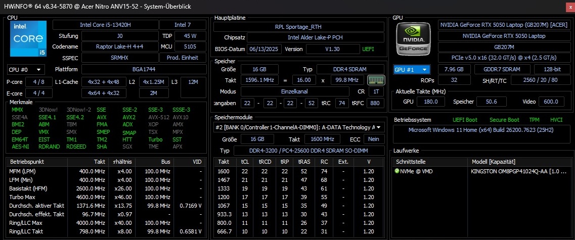 | Acer Nitro V 15 ANV15-51-582S Intel Core i5-13420H ⎘ NVIDIA GeForce RTX 4050 Laptop GPU ⎘ 16 GB Geheugen, 512 GB SSD | Amazon: 1. Deal4GO CPU & GPU Graphics C... 2. Deal4GO CPU Cooling Fan 23.Q... 3. Deal4GO GPU Graphics Cooling... Catalogusprijs: 900 EUR | 2.1 kg | 23.5 mm | 15.60" 1920x1080 141 PPI IPS | |