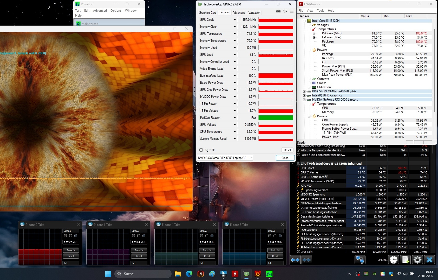 De temperaturen komen overeen met de verwachtingen voor een RTX 5050 laptop. In ruststand blijft het chassis aangenaam koel.