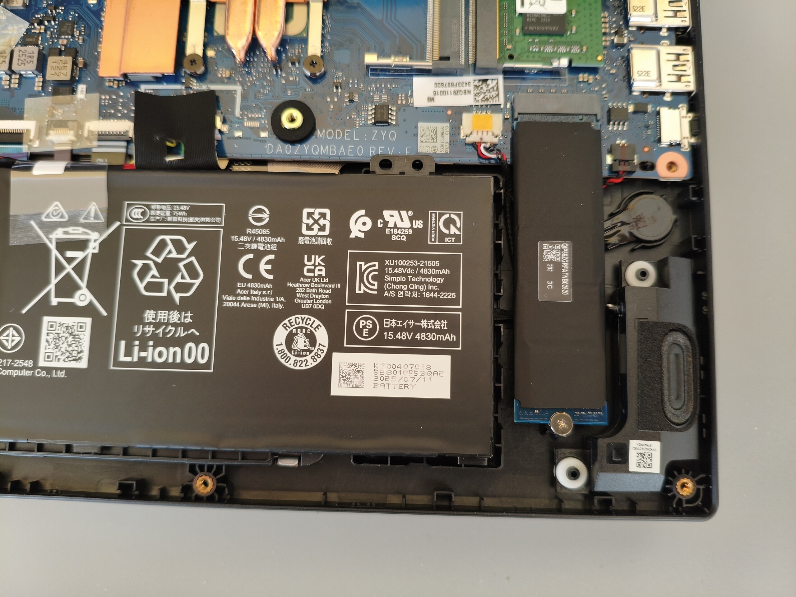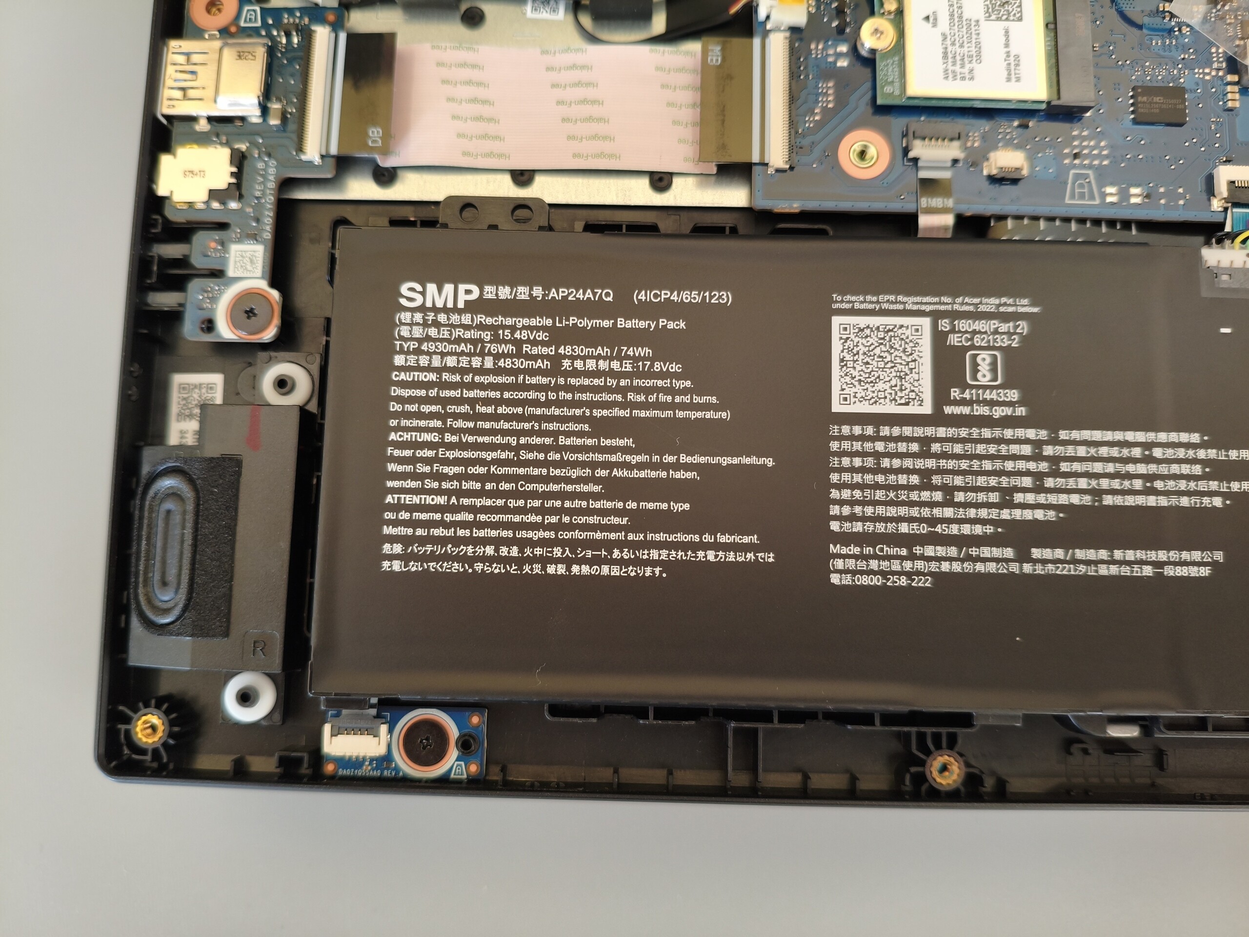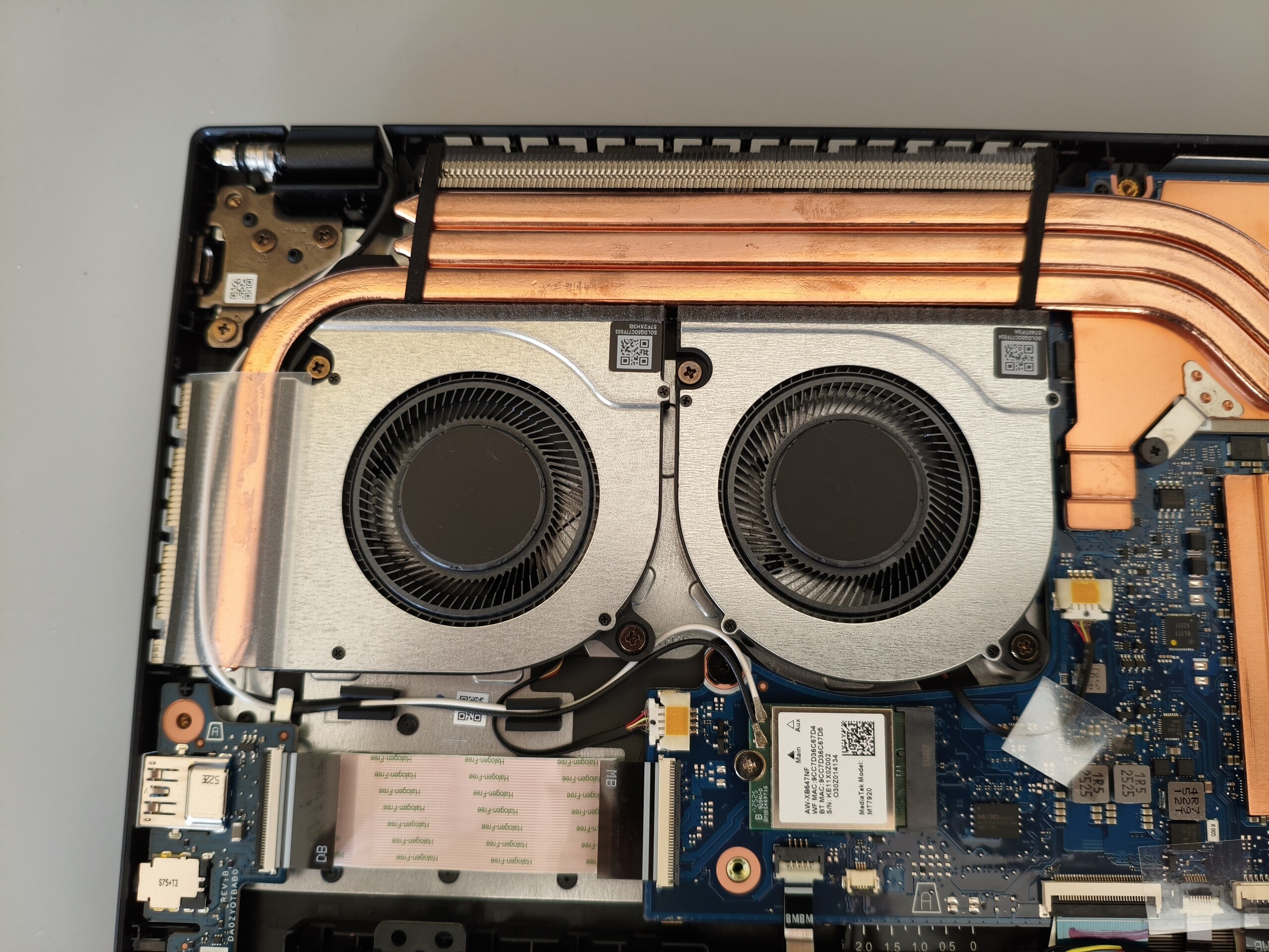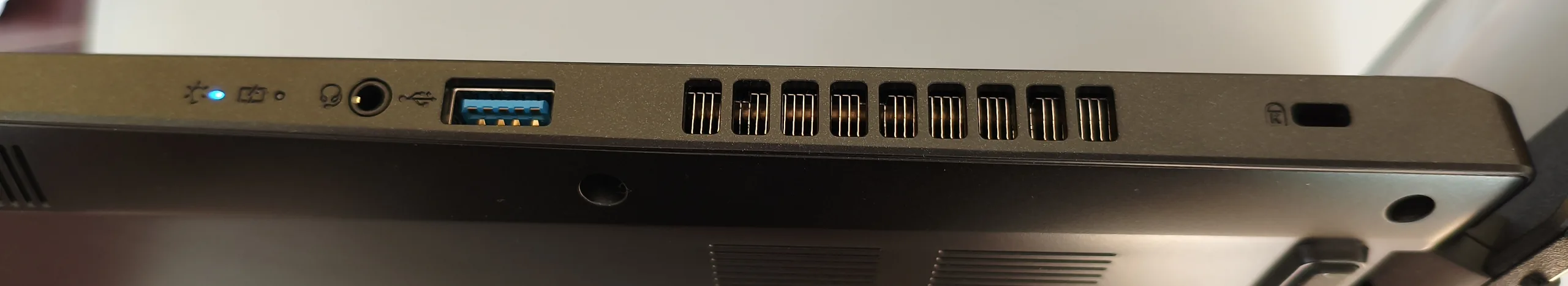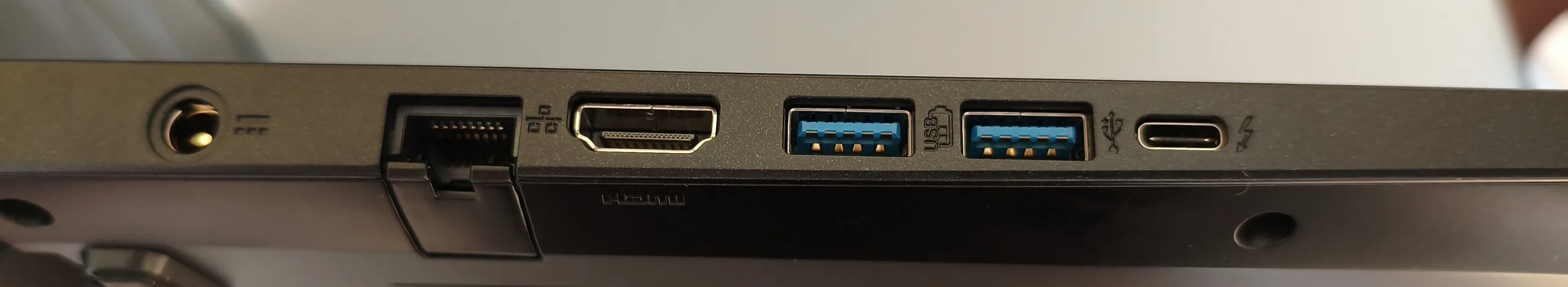 Afgezien van het ontbreken van een kaartlezer, laat de poortenselectie weinig ruimte voor kritiek. De Gigabit LAN-poort, HDMI-uitgang en 3,5 mm audio-aansluiting worden aangevuld met drie USB-A-poorten en een Thunderbolt 4-aansluiting. Er is ook een Kensington-slot aanwezig. De Wi-Fi 6E module levert middelmatige prestaties, en de nogal zachte webcam levert al even weinig indrukwekkende resultaten. Om toegang te krijgen tot de binnenkant moeten er 11 kruiskopschroeven verwijderd worden. Afbeeldingen van het interieur vindt u hieronder.