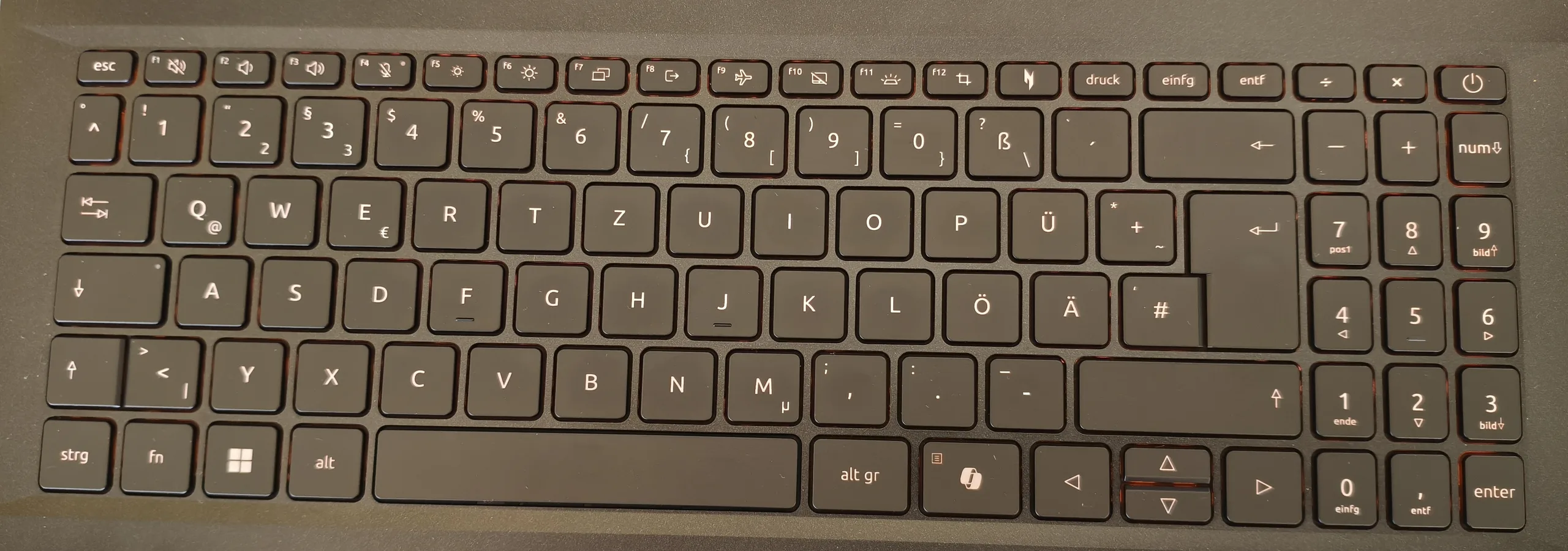 We waren niet helemaal tevreden over de indeling van het toetsenbord. Punten van kritiek zijn onder andere het numerieke toetsenblok met drie kolommen in plaats van een volledige indeling met vier kolommen, en de nogal kleine centrale pijltjestoetsen. De type-ervaring is typisch rubber-dome en daarom niets bijzonders. Ook de achtergrondverlichting is voor verbetering vatbaar. De oranje verlichting is niet bijzonder helder, zelfs niet op de hoogste stand. Aan de andere kant heeft de 15-inch laptop een redelijk groot touchpad van 12,6 x 7,8 cm, hoewel het wat rammelig aanvoelt wanneer erop geklikt wordt.