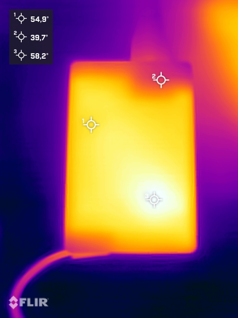 (+) Bij onbelast gebruik bedraagt de gemiddelde temperatuur voor de bovenzijde 27.2 °C / 81 F, vergeleken met het apparaatgemiddelde van 32.5 °C / 91 F.