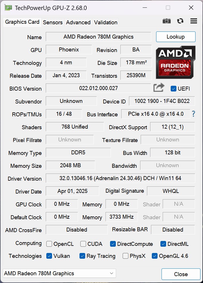 De Minisforum AI X1 met AMD Ryzen 7 255 vertrouwt op een geïntegreerde Radeon grafische eenheid, die al in veel andere modellen wordt gebruikt en daarom vergelijkbare prestaties levert. Intels nieuwe Arc Graphics 140T kan in sommige scenario's betere prestaties leveren, hoewel AMD's Radeon 780M in vergelijking vaak beter presteert. Het komt echter niet in de buurt van de prestaties van speciale GPU's, zoals een Nvidia GeForce RTX 4050 laptop.