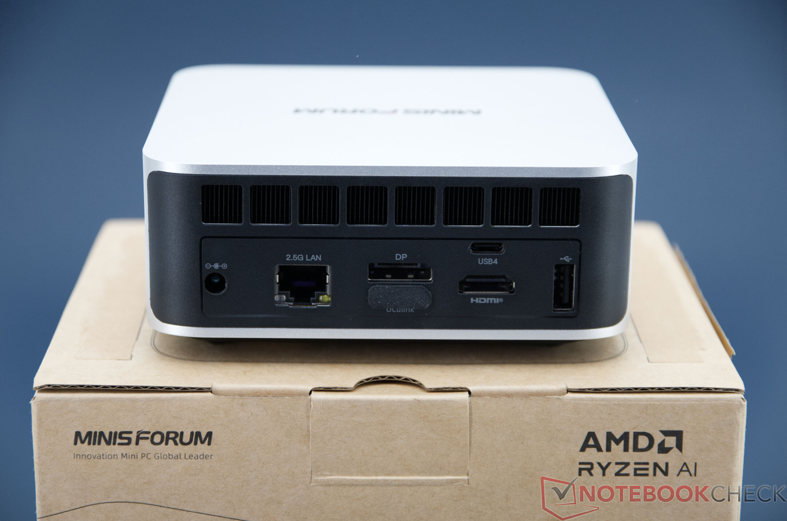 De mini PC biedt veelzijdige aansluitmogelijkheden: twee USB4 poorten met PCIe 4.0 x4 aansluitingen maken zeer hoge gegevenssnelheden mogelijk, en het extra M.2 slot kan optioneel gebruikt worden als OCuLink voor externe GPU's. Er kunnen ook tot vier beeldschermen worden aangestuurd, een 2,5 Gbit/s LAN-poort zorgt voor snelle verbindingen en WiFi 7 voegt een krachtig draadloos netwerk toe aan de mix.