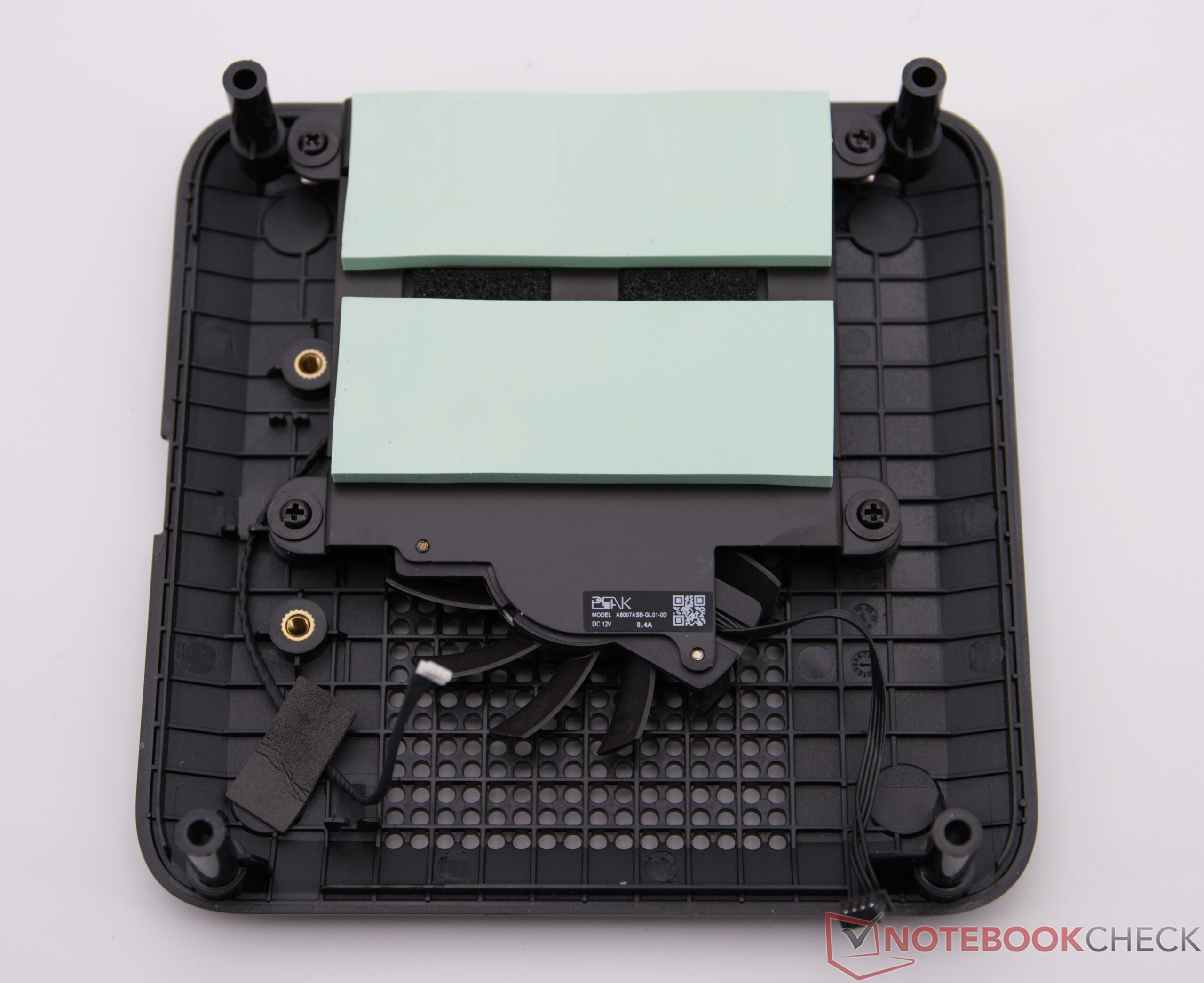 De Minisforum AI X1 kan gemakkelijk via de onderkant worden geopend. Het RAM en de SSD kunnen gemakkelijk worden vervangen of geïnstalleerd als u bij aankoop voor de barebone-versie hebt gekozen. Er is ook een extra M.2-sleuf beschikbaar, die gebruikt kan worden om een OCuLink-adapter te installeren.