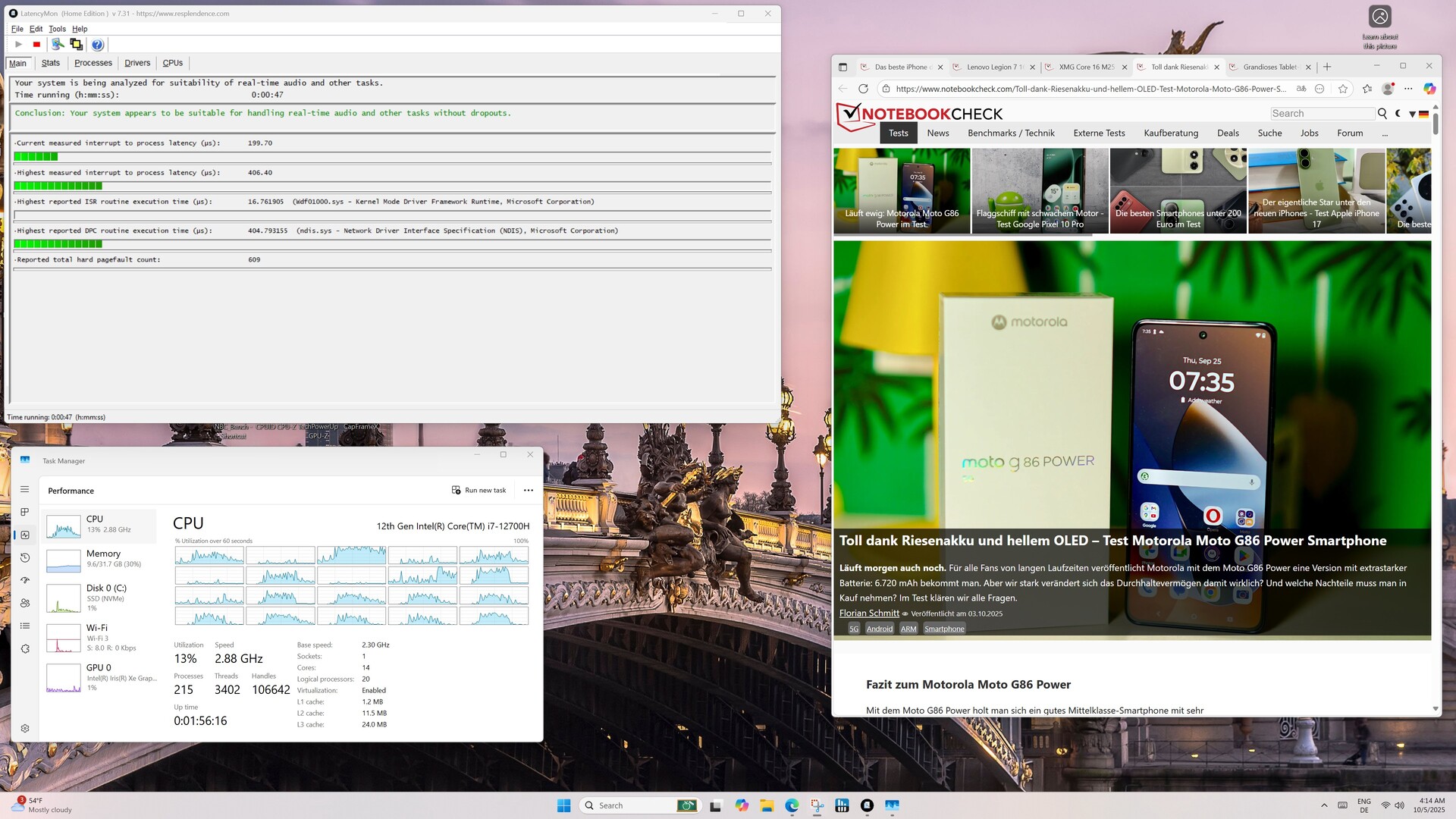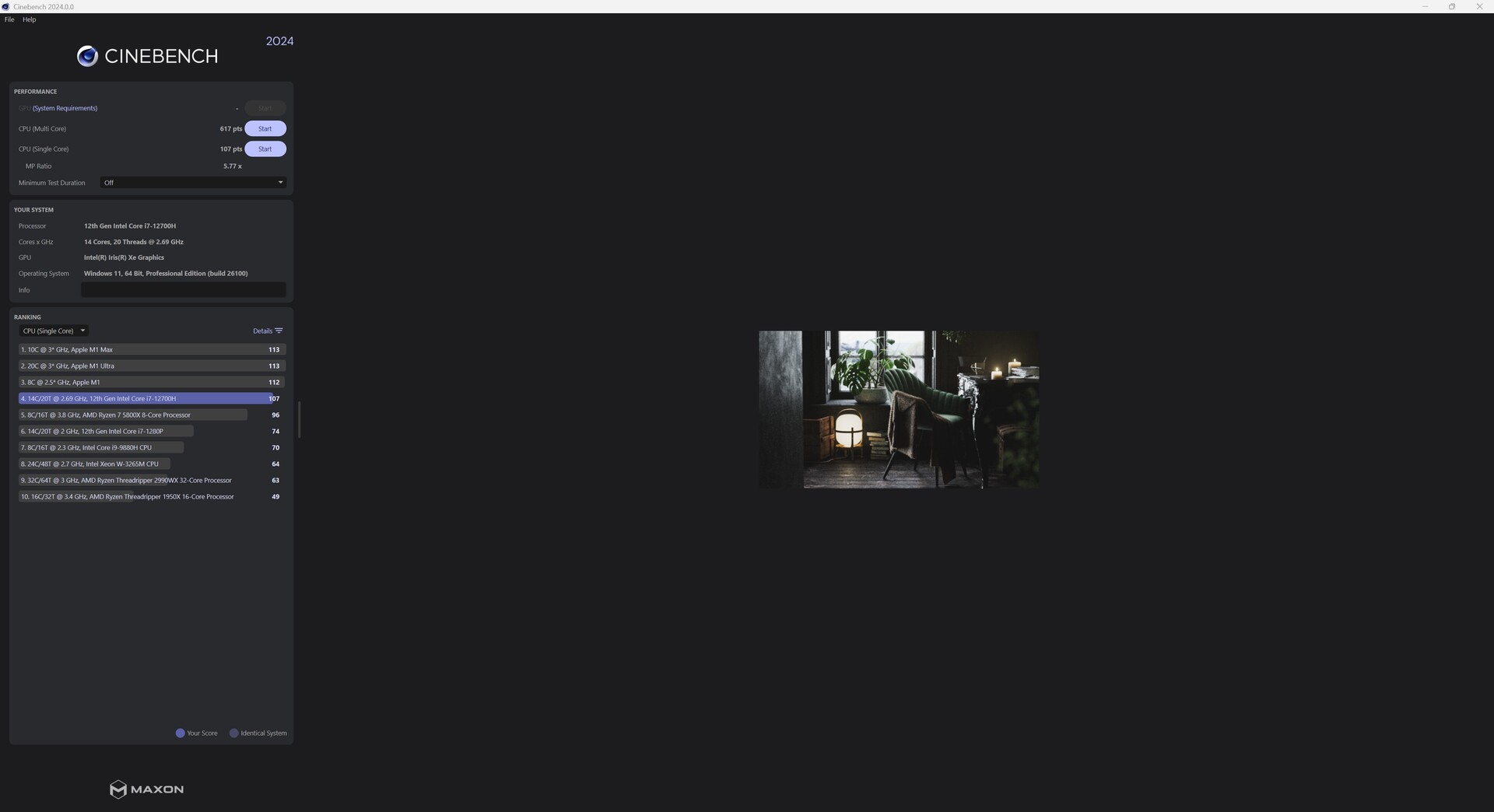 De Intel Core i7-12700H levert solide prestaties met zijn 14 cores (6P + 8E). Wat betreft stroomverbruik werkt de SoC slechts met 35 watt, wat volgens de specificaties van Intel het gegarandeerde minimum is. Dit betekent dat de processor zijn concurrenten niet kan bijhouden in multi-threaded taken.
