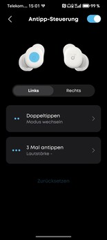 De oortelefoons worden voornamelijk bediend via de app, omdat de aanraakoppervlakken opzettelijk klein en minder gevoelig zijn om onbedoelde invoer tijdens het slapen te voorkomen. Dit is een goed idee, maar het is wel even wennen. In het dagelijks gebruik werken commando's zoals afspelen/pauzeren betrouwbaar, en schakelen tussen ANC- en slaapmodi gaat ook probleemloos.