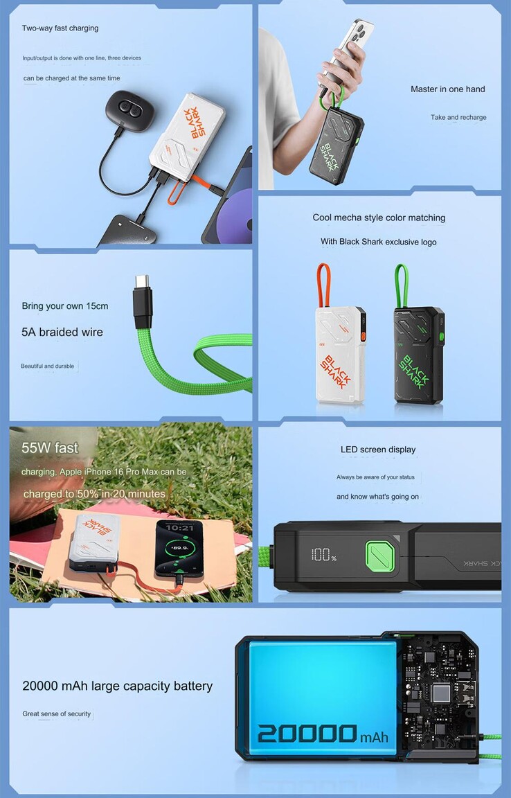 Black Shark heeft een nieuwe powerbank geïntroduceerd in China. Deze heeft een relatief hoge capaciteit van 20.000 mAh, wat volgens het bedrijf genoeg is om de iPhone 16 Pro ongeveer vier keer van 0% naar 100% te krijgen en Xiaomi 14 drie keer. Er is ook ondersteuning voor 55W snelladen.