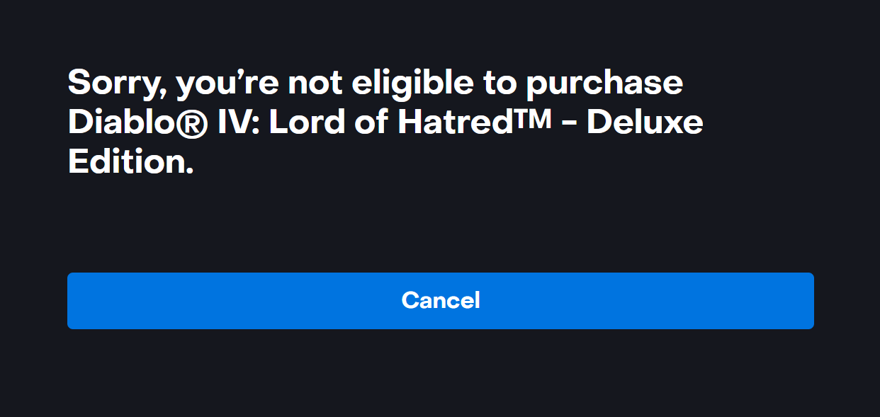 Veel gebruikers (waaronder ikzelf) op Reddit, Battle.net, Xen vrijwel alle platforms kunnen de uitbreiding niet kopen. Aanvankelijk werden gebruikers begroet met de melding "Sorry, u kunt Diablo IV: Lord of Hatred - Deluxe Edition niet kopen" op de Battle.net-client. De client veranderde tussendoor zelfs willekeurig van valuta. Op het moment van schrijven lijkt de situatie niet beter te zijn geworden.