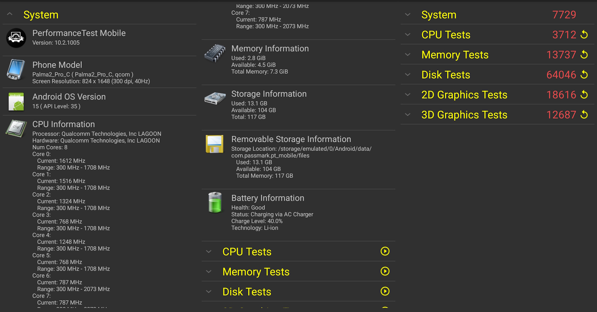 PassMark benchmarks wijzen erop dat de prestaties vergelijkbaar zijn met die van een Samsung S10 of A52.