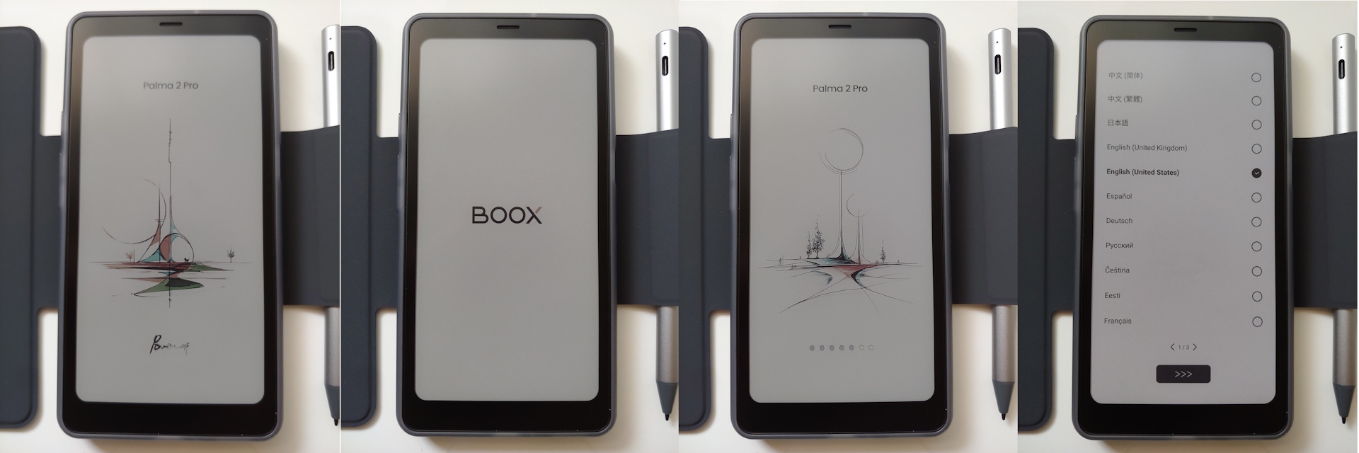 De Palma 2 Pro kan snel pagina's omslaan op het kleuren E Ink scherm. De stylus tekent goed op het matte, papierachtige scherm. Luide stereoluidsprekers verwerken gemakkelijk audioboeken en podcasts. Het ondersteunt 5G SIM-kaarten voor internettoegang, maar geen telefoongesprekken, en A-GPS vereist er een. Het scherm heeft een beperkt kleurengamma en de videokwaliteit blijft achter bij OLED-panelen.