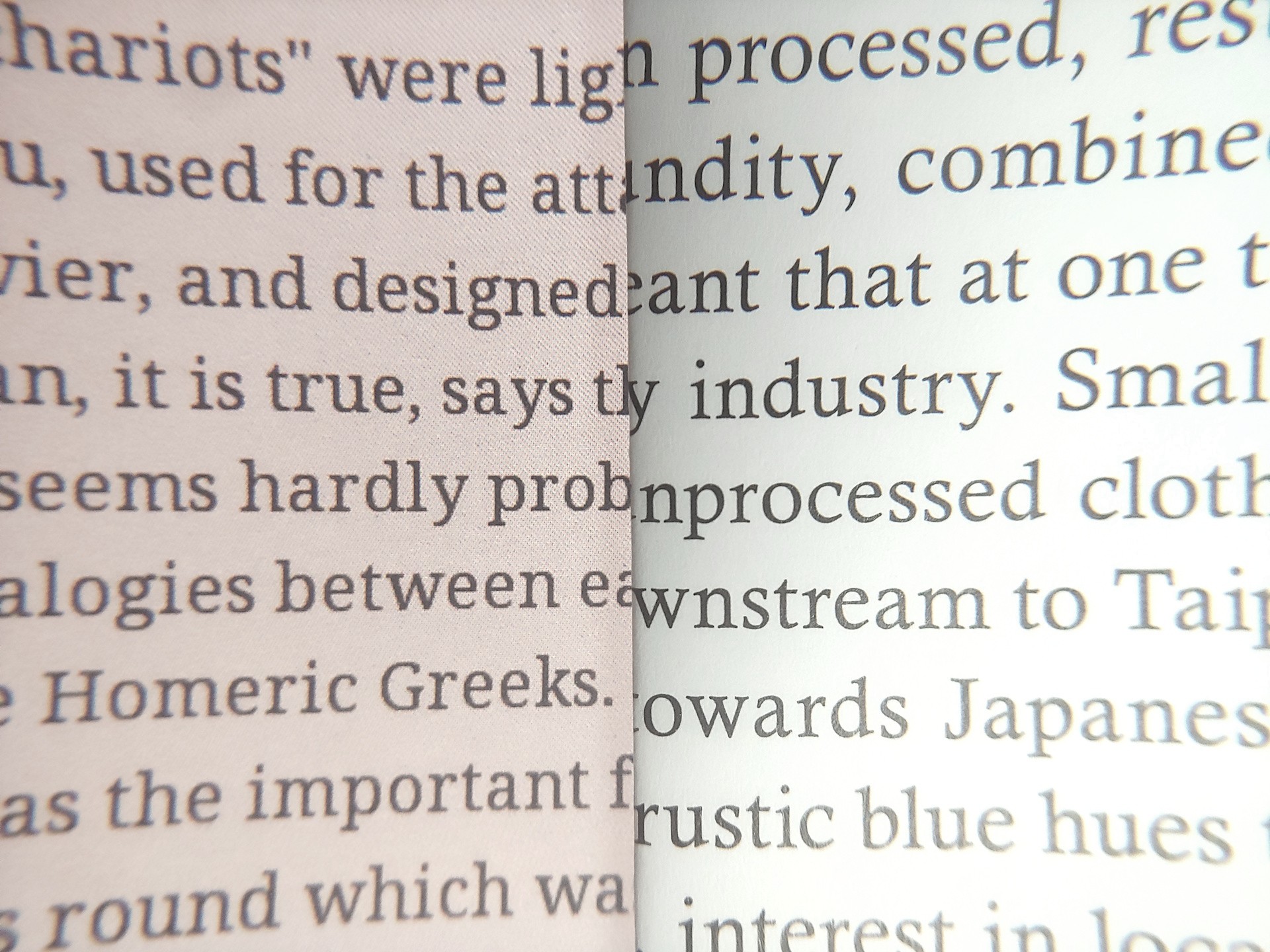 Pixels waren zichtbaar bij 8x vergroting. Het OLED-display had iets schonere tekstranden, maar geen van beide kwam overeen met de afdruk van tijdschriften en de randen werden ruwer bij het overschakelen van de Regal-modus naar de Speed-modus.