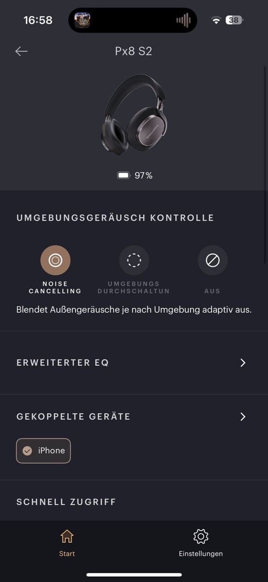De Bowers & Wilkins Muziek-app maakt het eenvoudig om aangesloten apparaten te beheren. De app biedt ook toegang tot een eenvoudige vijfbands equalizer, firmware-updates en ANC-bediening, en integreert zelfs rechtstreeks muziekstreamingdiensten. Het is jammer dat B&W niet meer slimme functies toevoegt, zoals het automatisch aanpassen van ANC of transparantie op basis van de locatie van de gebruiker.