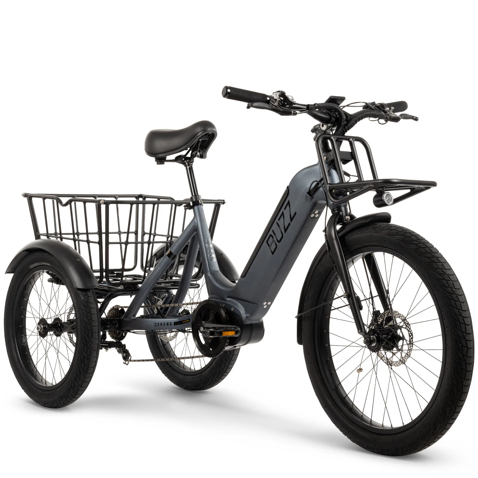 Buzz heeft 24" x 3" voorbanden en 20" x 3" achterbanden in de Cerena T2 ingebouwd, aangevuld met mechanische schijfremmen. Andere kenmerken van de e-trike zijn geïntegreerde verlichting, een parkeerrem, een bagagedrager en een duimgaspedaal. De Buzz Cerena T2 e-trike is verkrijgbaar in één grijze kleur en is nu te koop via de officiële website van Buzz officiële website met een vanafprijs van $1.399.