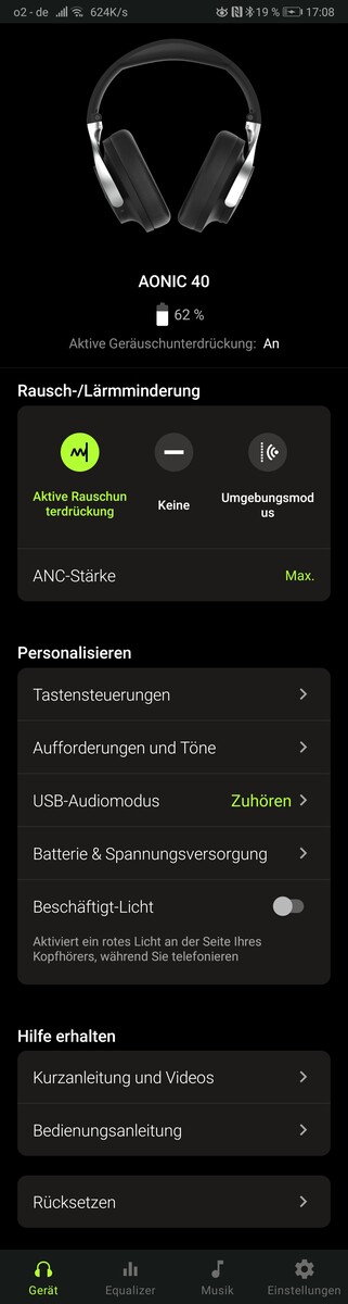 Over het algemeen zijn we behoorlijk tevreden over de app en het aanpassen van de hoofdtelefoon aan persoonlijke voorkeuren is een koud kunstje. Niet alle mogelijkheden van de AONIC 40 zijn echter toegankelijk zonder smartphone, wat voor sommigen een nadeel kan zijn