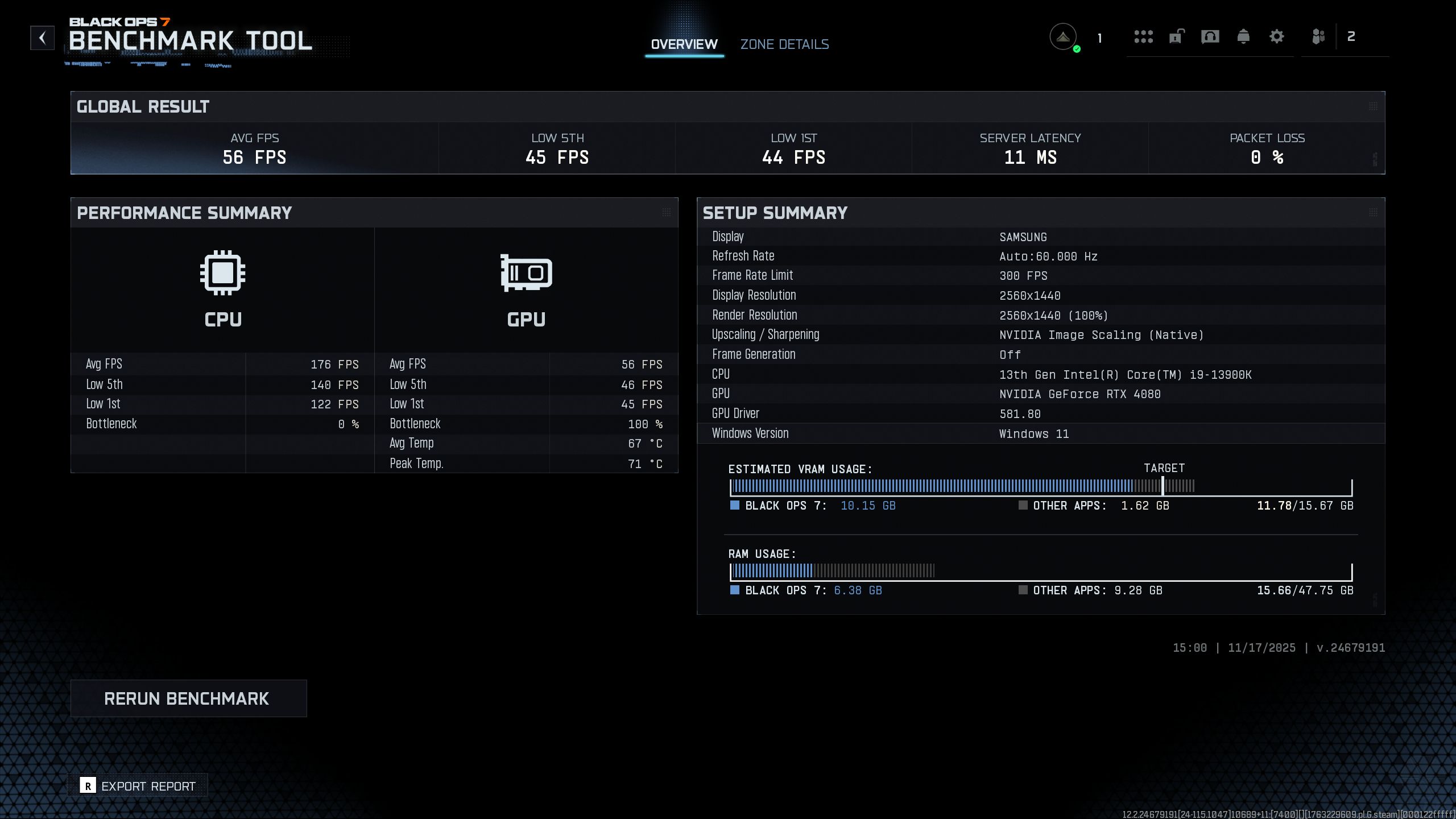 Black Ops 7 uitvoeren op 3.840 x 2.160 pixels in de Extreme preset, met ray tracing en zonder upscaling belast alle momenteel beschikbare laptop-GPU's en zelfs high-end desktopkaarten zoals de GeForce RTX 4080.