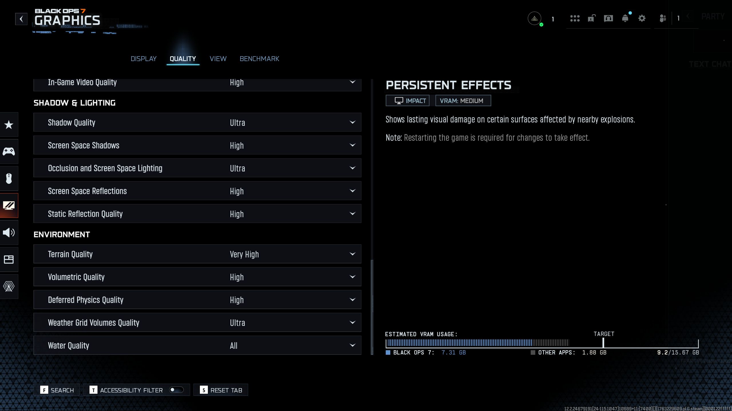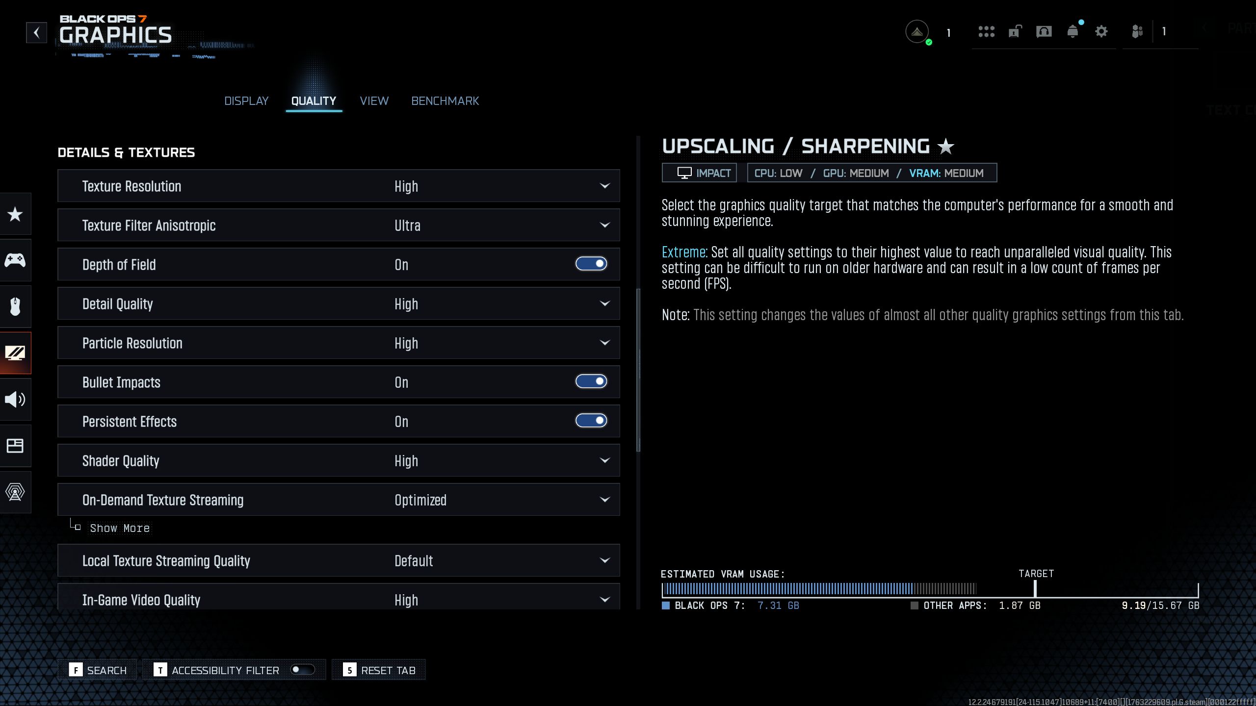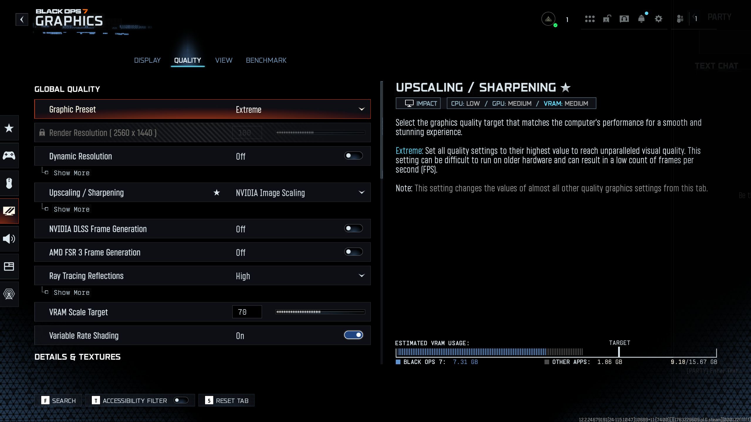 Zoals de meeste huidige spellen is Call of Duty: Black Ops 7 behoorlijk VRAM-vretend, zonder het niveau van sommige Unreal Engine 5-spellen te bereiken (zie Borderlands 4). Maximale instellingen bij een QHD-resolutie vereisen bijvoorbeeld ongeveer 8 GB VRAM. Het beste is dat wijzigingen in instellingen direct worden toegepast zonder opnieuw op te starten.