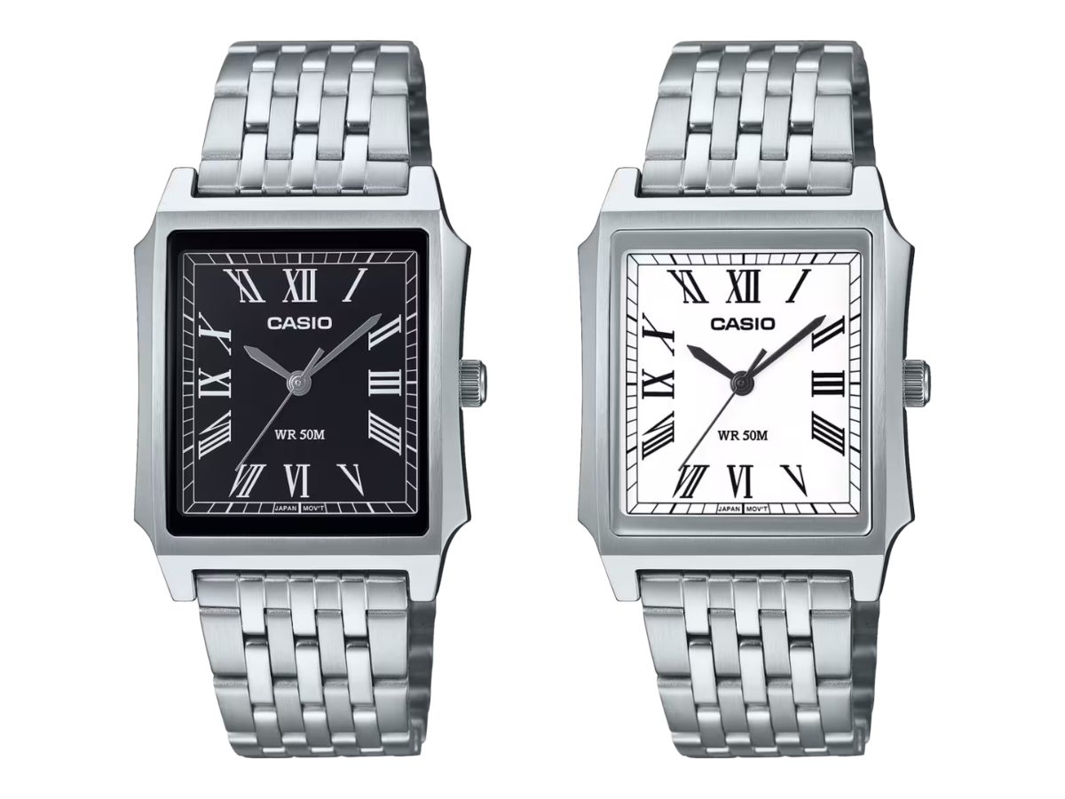 In de VS heeft Casio onlangs de MTPB190D-1BV en de MTPB190D-7BV uit. Deze horloges kosten $110 per stuk en zijn verkrijgbaar in de online winkel van het merk. Beide horloges hebben een zilverkleurige behuizing met een bijpassende metalen schakelband met zeven rijen. De MTPB190D-1BV heeft echter een zwarte wijzerplaat met zilverkleurige wijzers en indexen, en de MTPB190D-7BV heeft een witte wijzerplaat met zwarte accenten.