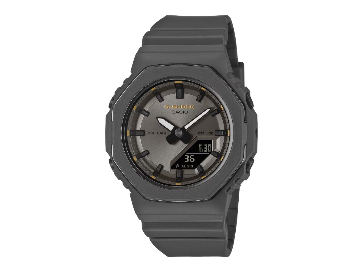 Casio's G-Shock GMAP2126W-8A is een analoog-digitaal horloge met twee analoge wijzers op een donkergrijze metallic wijzerplaat met goudkleurige accenten. Het horloge blijft naar verluidt nauwkeurig tot op 15 seconden per maand, en een wijzershift-functie zorgt ervoor dat het ingelegde digitale display nooit wordt verborgen. Het scherm toont informatie over de datum en de dag van de week. Bovendien biedt dit model hulpmiddelen zoals een afteltimer, een stopwatch van 1/100ste seconde, alarmen en uursignalen. Gebruikers kunnen kiezen uit een lijst van 48 steden om de tijdzone aan te passen. Het is ook vermeldenswaard dat het model waterbestendig is tot 200 m.