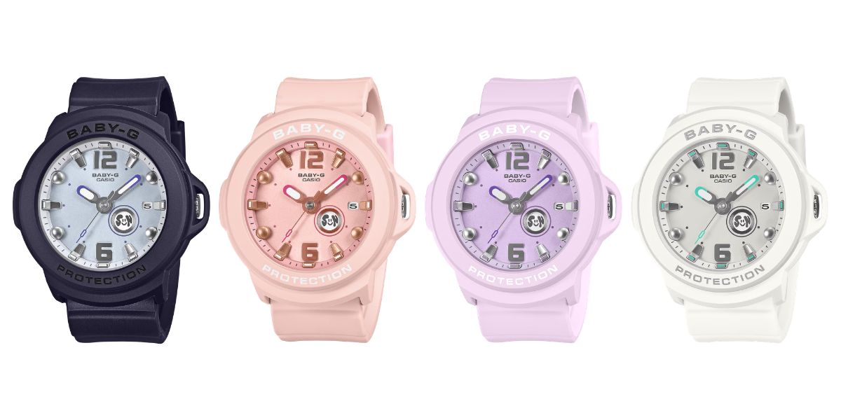 Casio's Baby-G+Plus BGA-15K horloge is verkrijgbaar in vier pastelkleuren: de BGA-15K-2A (blauw/navy/paars), de BGA-15K-4A (roze), de BGA-15K-6A (paars), en de BGA-15K-7A (wit/mintgroen). Elk horloge heeft een glinsterende wijzerplaat, een harsbehuizing en twee accessoires: een bandje en een siliconen houder zodat het als horloge, tasbedel of sleutelhanger kan worden gedragen.