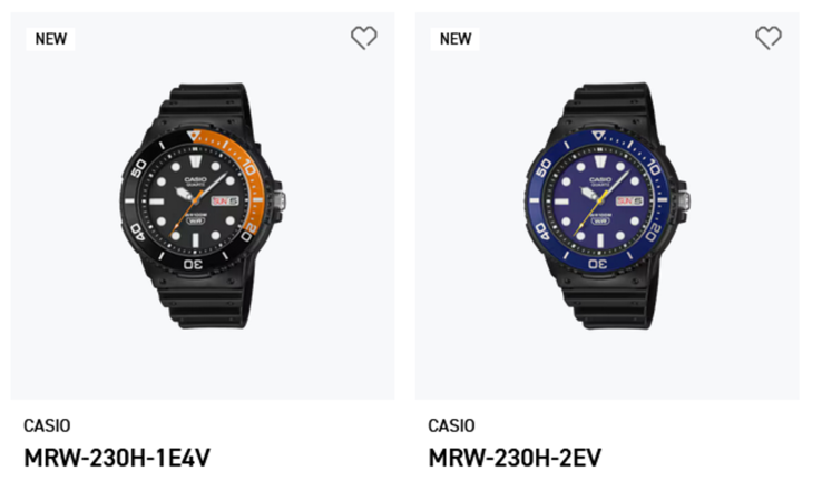 Casio heeft nu officieel nog twee horloges op de internationale website gezet - de MRW-230H-1E4V en MRW-230H-2EV. Dit bevestigt eerdere waarnemingen van detailhandelaren. Deze modellen waren al eerder verschenen op internationale detailhandellijsten via Bellodus dit is hun eerste officiële aanwezigheid op het wereldwijde platform van Casio.