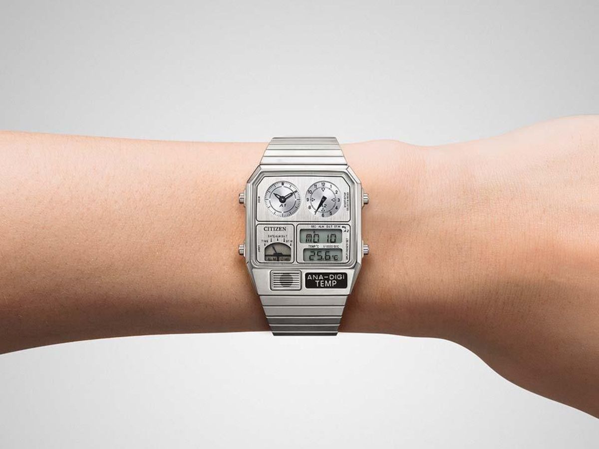 Het Citizen Ana-Digi Temp horloge werd in de jaren 1980 gelanceerd en het bedrijf suggereert dat het een "retro-futuristisch ontwerp" heeft. De kast, wijzerplaat en band zijn allemaal gemaakt van roestvrij staal in dezelfde kleur, met een haarlijnafwerking in verschillende richtingen op verschillende elementen, wat textuur geeft aan het ontwerp. Elke variant heeft een vierkante wijzerplaat, met het woord Ana-Digi Temp in het onderste gedeelte van de wijzerplaat.