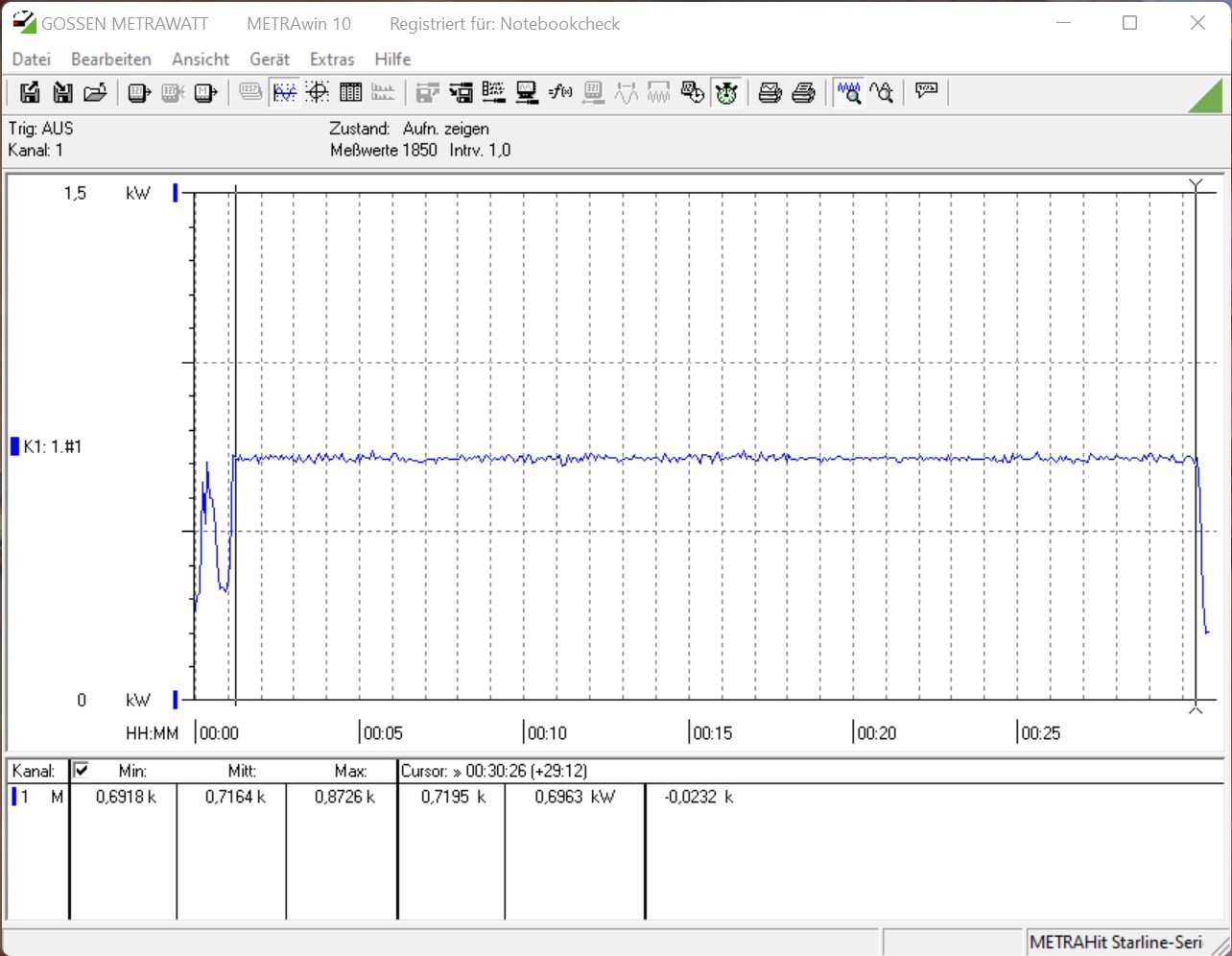 Het speciaal ontwikkelde koelingsconcept zorgt voor goede prestaties, wat we al hebben gezien in de CPU benchmarks. Maar zelfs onder permanente belasting bereikt de koeling zijn grenzen niet. Zo zijn alle scores van de Cinebench R15 multi-loop min of meer op gelijke hoogte met een paar kleine schommelingen. Het werkstation beheerst de 50 runs met een gemiddelde van 7,121 punten.