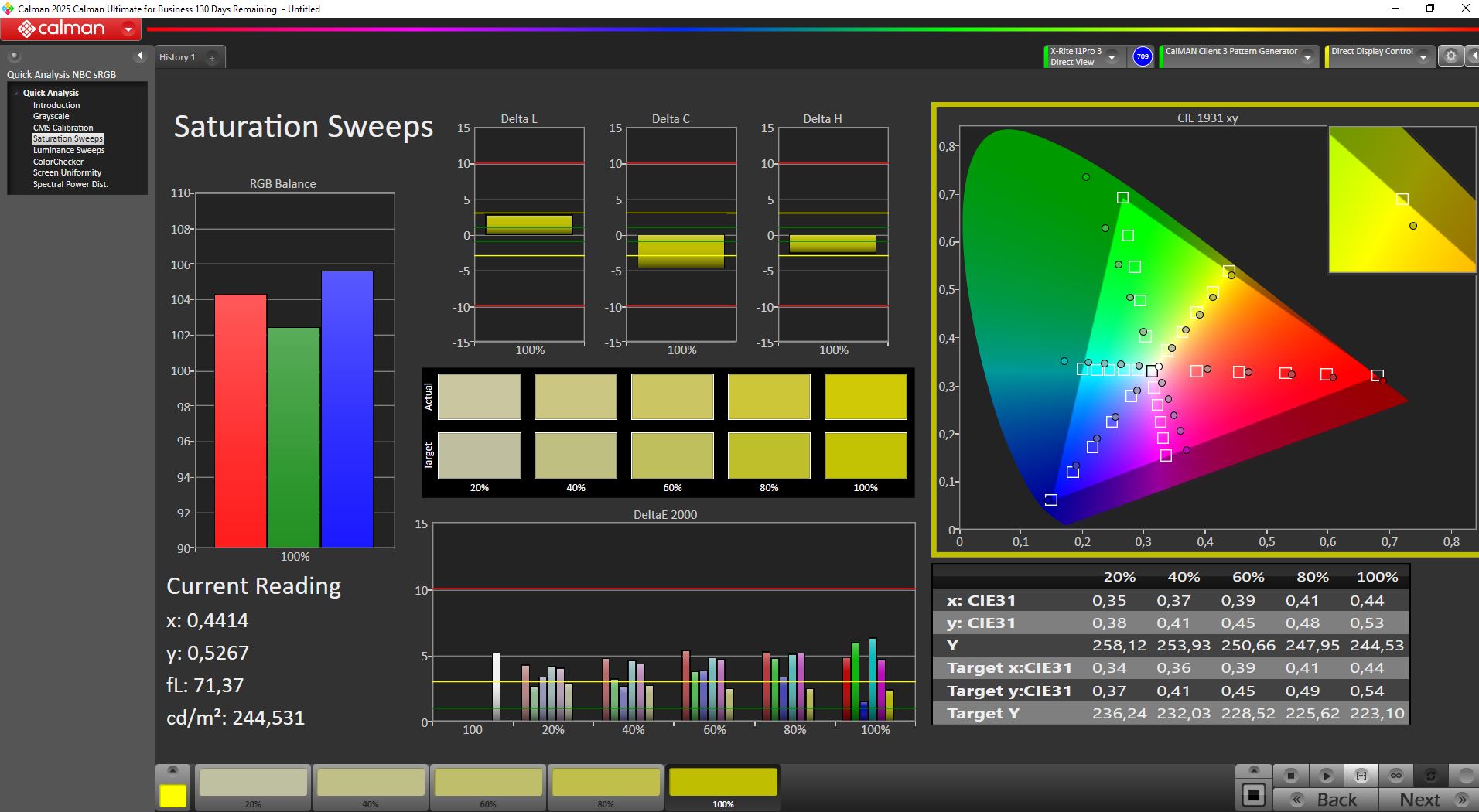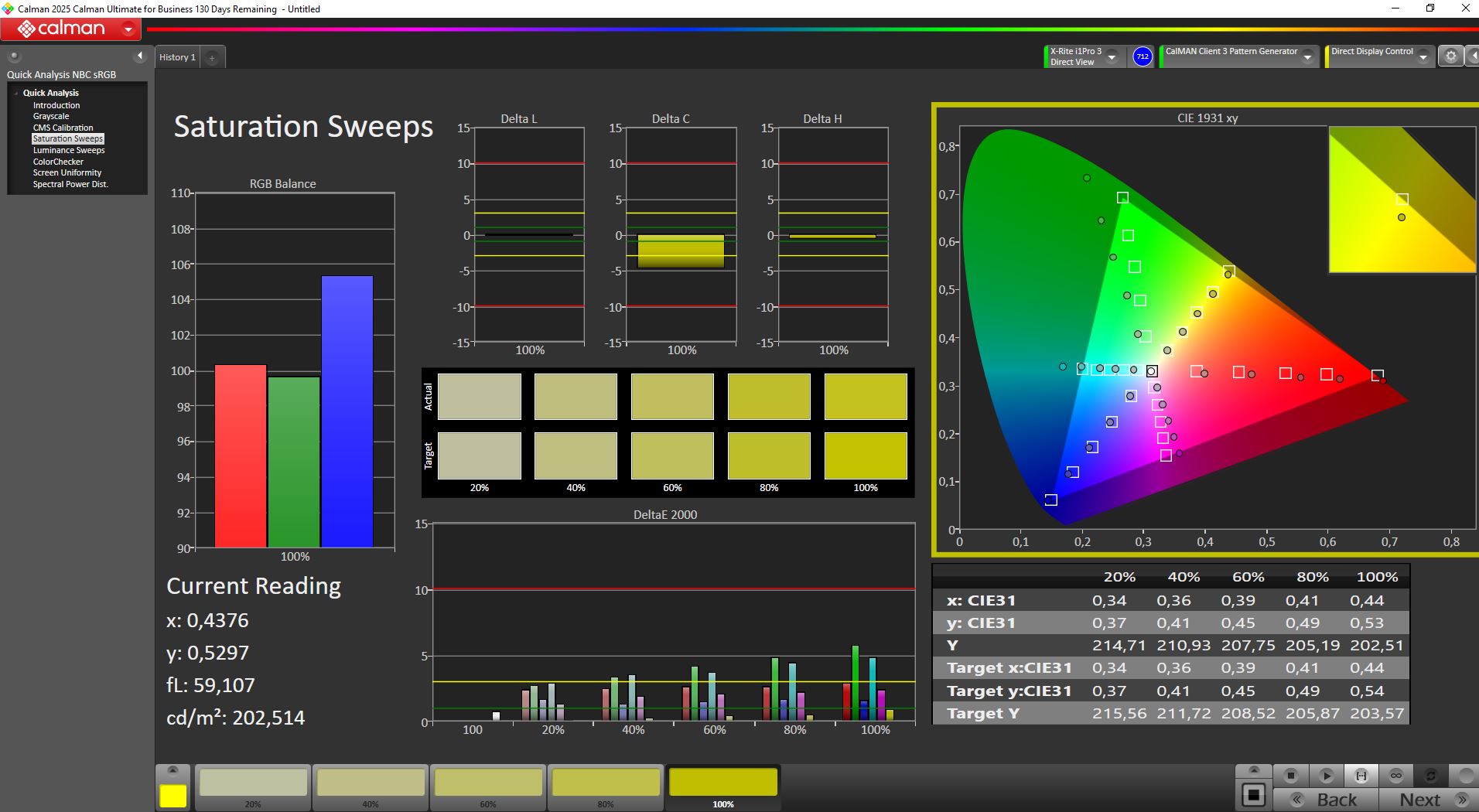 Onze eenheid haalde "slechts" 429 nits, maar het zwartniveau en contrast zijn indrukwekkend en het paneel dekt bijna volledig de sRGB, DisplayP3 en AdobeRGB kleurruimten.