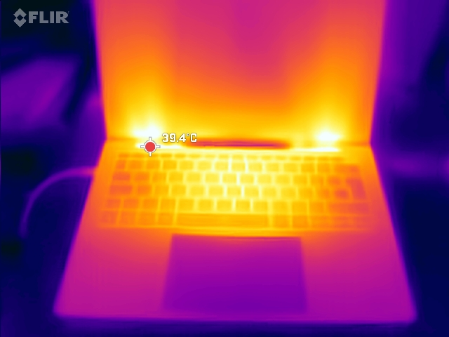 In de stresstest bereikt de hotspot 43 °C aan de onderkant, in de buurt van het midden in de richting van het beeldscherm. Het centrale gedeelte van het toetsenbord wordt ook warm, maar beide zijkanten blijven koeler en de palmsteunen blijven aangenaam koel.