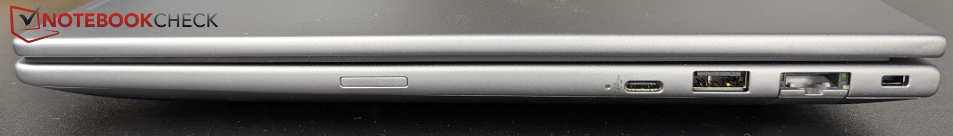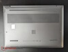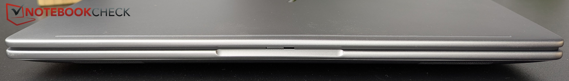 De zilvergrijze metalen behuizing van hoge kwaliteit voelt solide aan, met scharnieren die slechts een klein beetje speling vertonen.