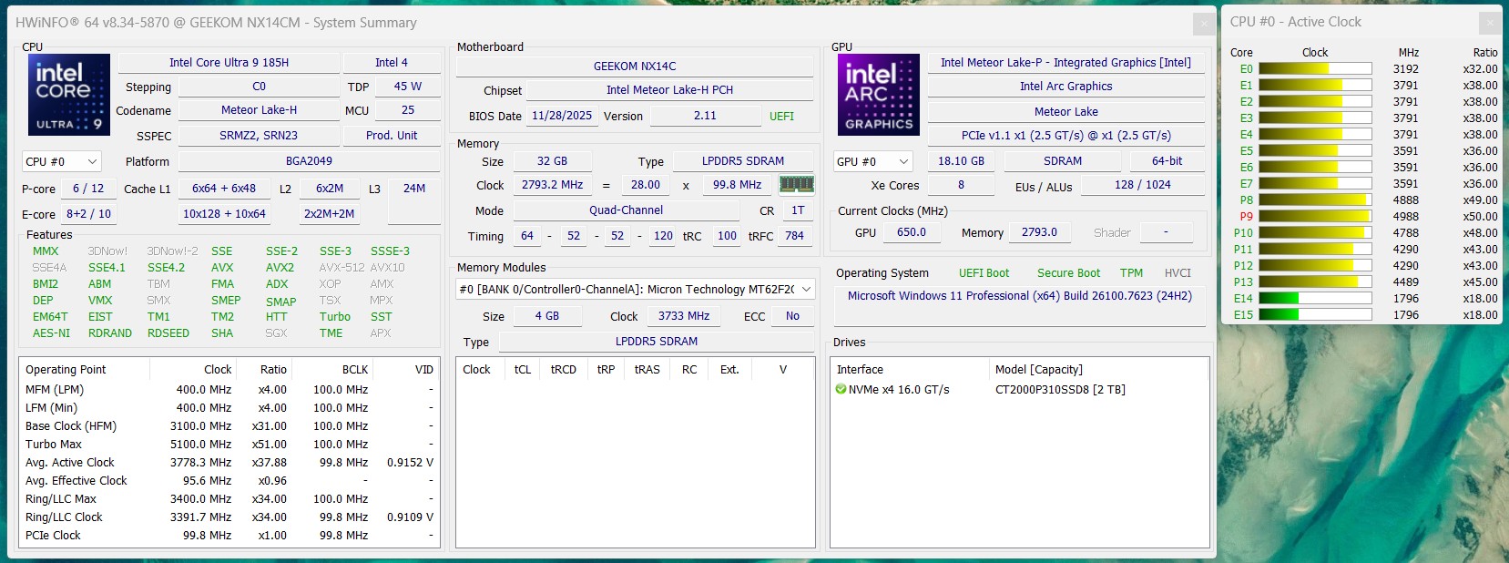 | Geekom GeekBook X14 Pro Ultra 9 185H, Arc 8-Core, Crucial P310 CT2000P310SSD8, OLED, 2880x1800, 14" | Lenovo ThinkPad L14 Gen 6 21SE0022GE Ryzen AI 7 PRO 350, Radeon 860M, Kioxia BG6 KBG6AZNV1T02, IPS LED, 1920x1200, 14" | Lenovo ThinkPad E14 Gen 7 21U2002QGE Core Ultra 5 228V, Arc 130V, Samsung PM9C1b MZVL81T0HFLB-00BH1, IPS, 2880x1800, 14" | Acer TravelMate P6 TMP614-54-TCO-553Z Core Ultra 5 226V, Arc 130V, WDC PC SN810 512GB, IPS, 1920x1200, 14" | Asus ExpertBook PM3406 Ryzen AI 7 350, Radeon 860M, Western Digital PC SN5000S SDEQNSJ-512G-1002, IPS, 1920x1200, 14" | Dell 14 Plus Core Ultra 7 256V, Arc 140V, , IPS, 2560x1600, 14" | Gemiddeld Intel Arc 8-Core iGPU | Gemiddelde van klas Subnotebook | |