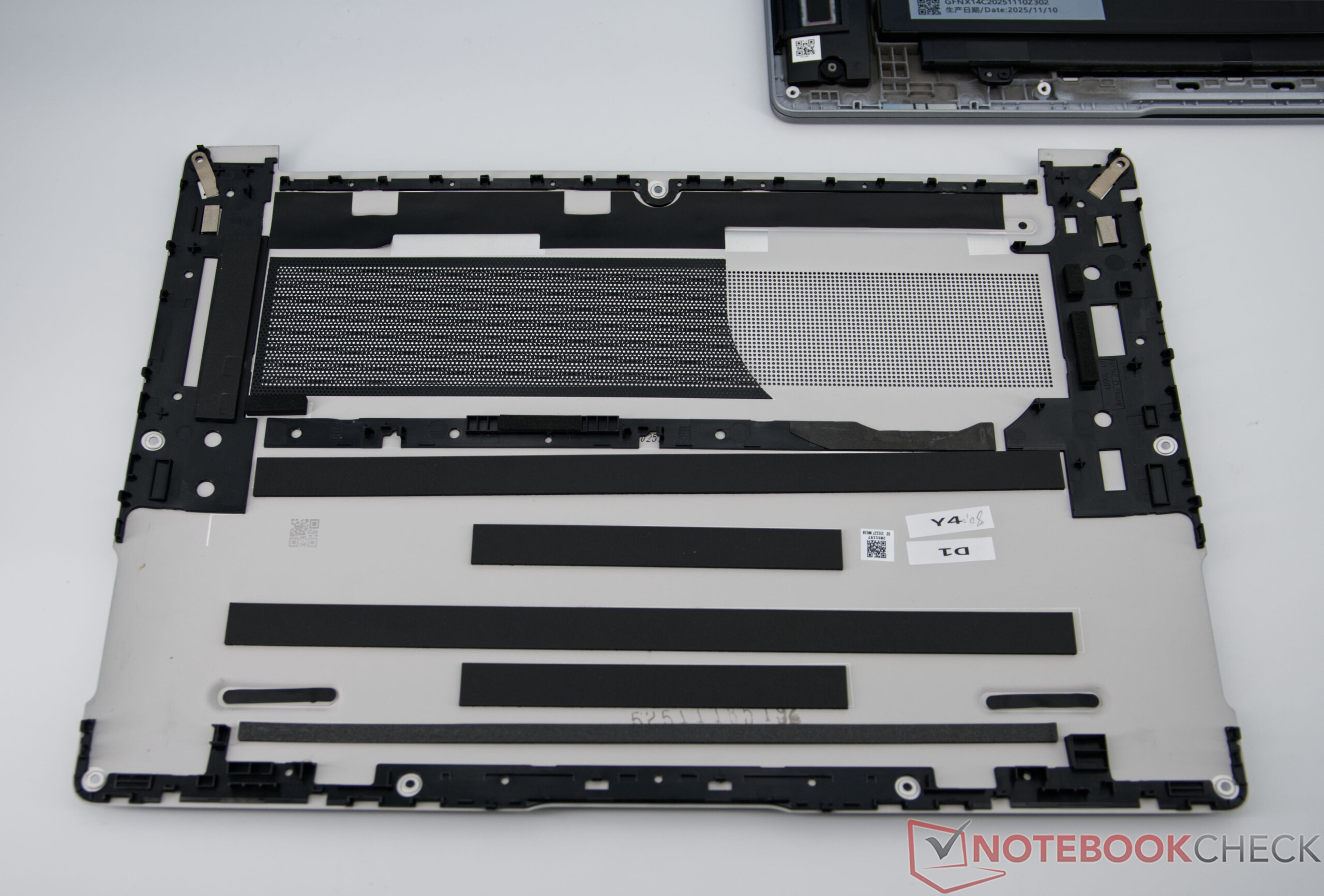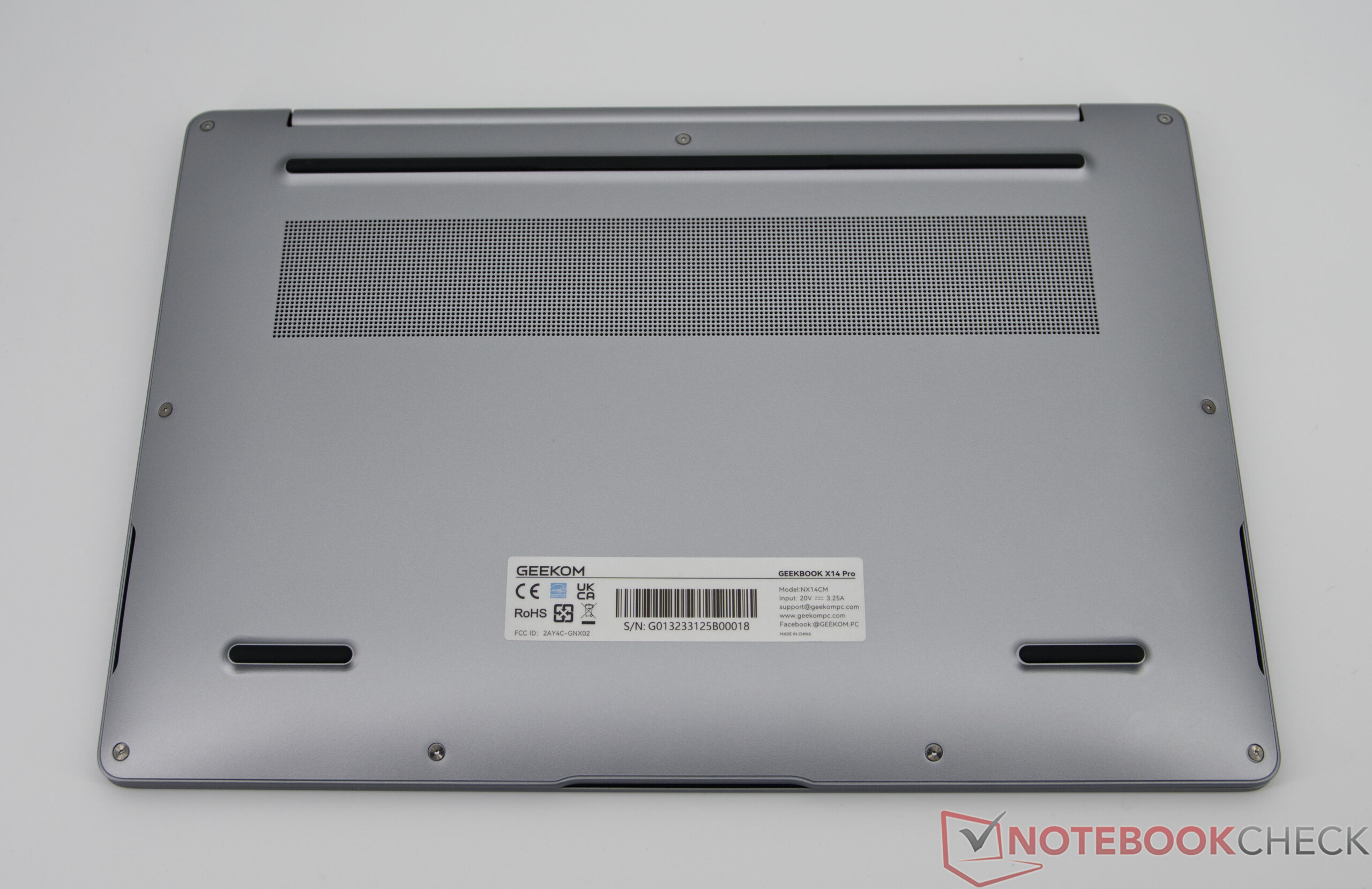 De GeekBook X14 Pro maakt indruk met een bijzonder licht metalen chassis van magnesiumlegering, een hoogwaardige afwerking en een strak en eigentijds ontwerp. Ondanks het lage gewicht lijkt de notebook stabiel, ook al kunnen er onder zware druk lichte buigpunten optreden - een typisch compromis van ultralichte apparaten. De scharnieren zijn stevig, geschikt voor dagelijks gebruik en houden het scherm goed op zijn plaats.