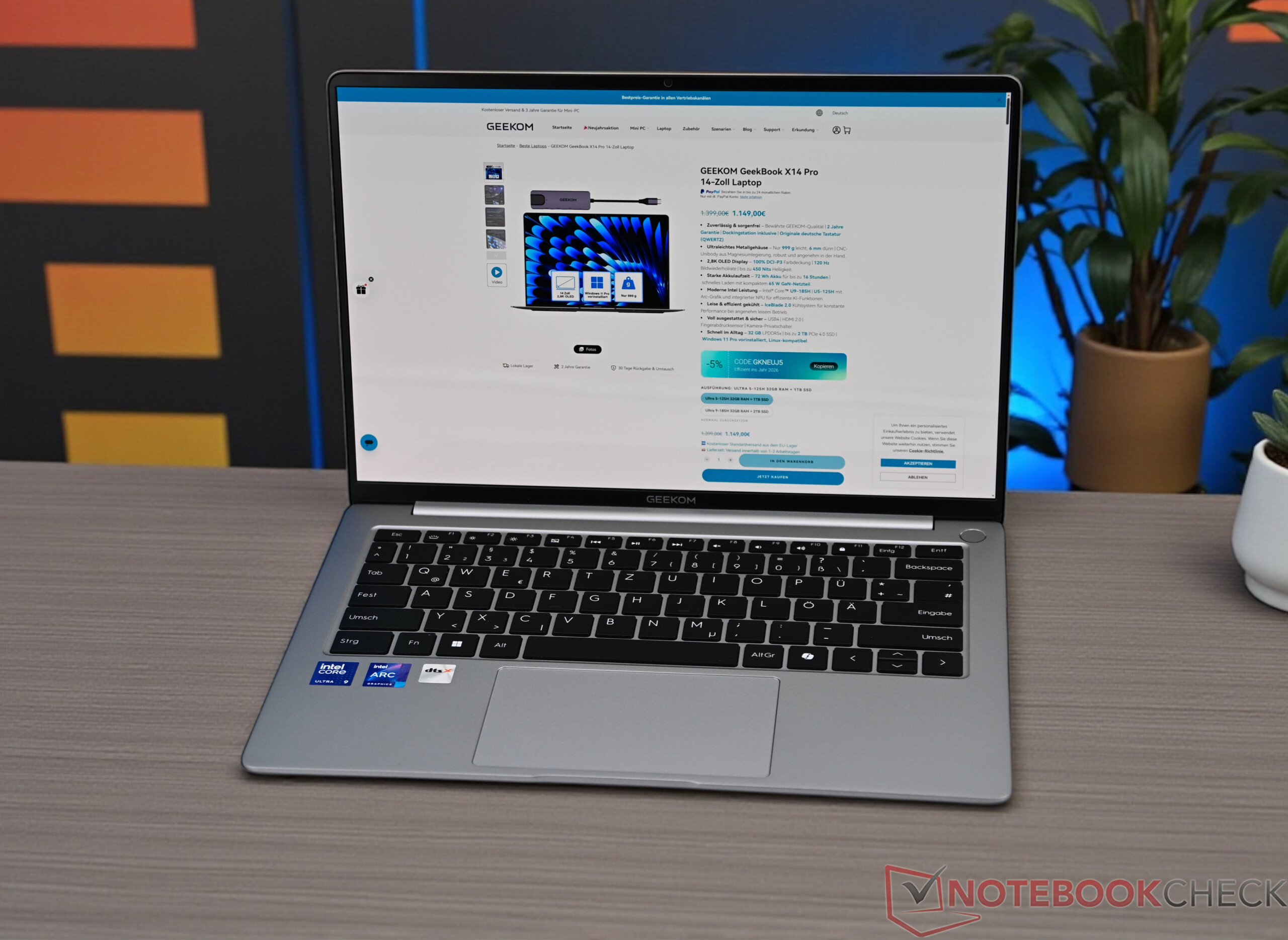 Met de GeekBook X14 Pro en de grotere GeekBook X16 Pro breidt Geekom, een fabrikant die voorheen vooral bekend stond om mini-pc's, zijn portfolio voor het eerst uit met notebooks. Onze test richt zich op het compactere 14-inch model, dat is uitgerust met een Intel Core Ultra 9 185H, 32 GB RAM en een 2 TB SSD in de topconfiguratie. De adviesprijs is 1.599 euro, hoewel Geekom zijn apparaten vaak met korting aanbiedt. Een goedkopere versie met Intel Core Ultra 5 125H, ook 32 GB RAM en 1 TB SSD, begint bij ongeveer 1.399 euro.
