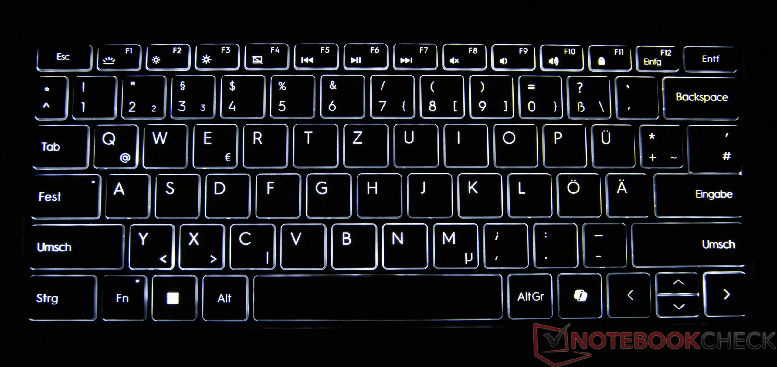 Het toetsenbord van de GeekBook X14 Pro biedt een lage aanslag in combinatie met een duidelijk voelbaar drukpunt. De toetsen geven een nauwkeurig typegevoel, wat ook langere typesessies mogelijk maakt, hoewel de feedback iets steviger is. Het 12 × 7,2 centimeter grote touchpad werkt betrouwbaar, voert invoer precies uit en ondersteunt de gebruikelijke multi-touch gebaren. Het hoogwaardige gevoel en een discreet, goed gedempt klikgeluid onderstrepen het aangename gebruiksgemak.