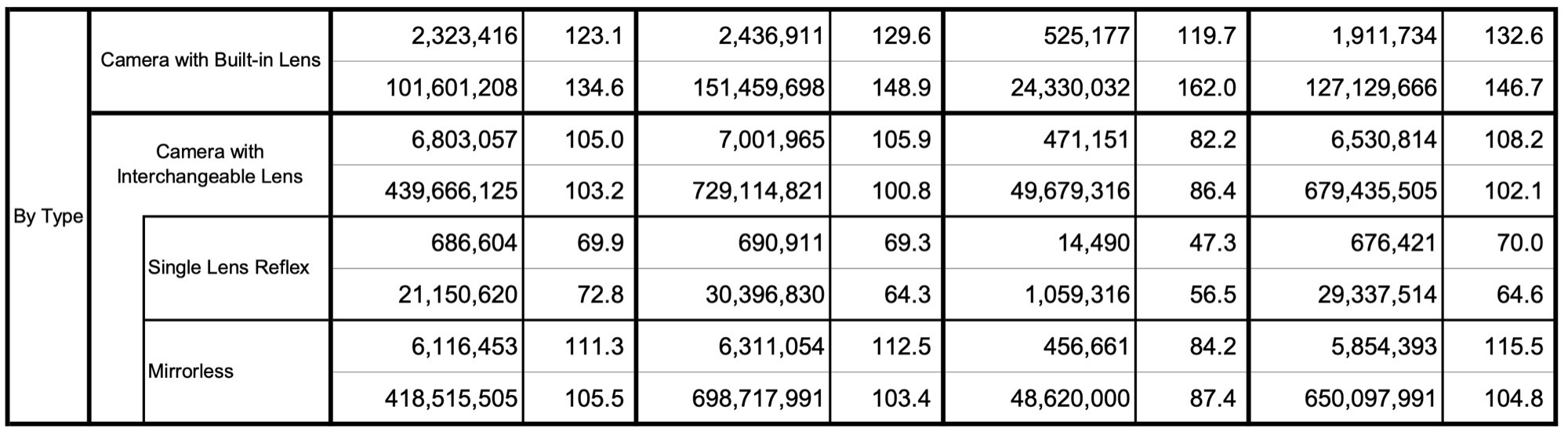 In 2025 steeg de verkoop van full-frame camera's met 1,9% j-o-j, terwijl camera's met verwisselbare lens en kleinere sensoren een stijging van 8,4% lieten zien. Europa was de op twee na grootste markt met 2,11 miljoen verkopen, net achter China (2,26 miljoen) en de VS (2,34 miljoen). De verkoopcijfers stegen in alle regio's. De wereldwijde verkoop van camera's heeft sinds 2007 geen twee opeenvolgende jaren van groei gekend, hoewel het onzeker blijft of deze trend zich in 2026 zal voortzetten gezien het moeilijke economische klimaat en de aanhoudende DRAM-crisis