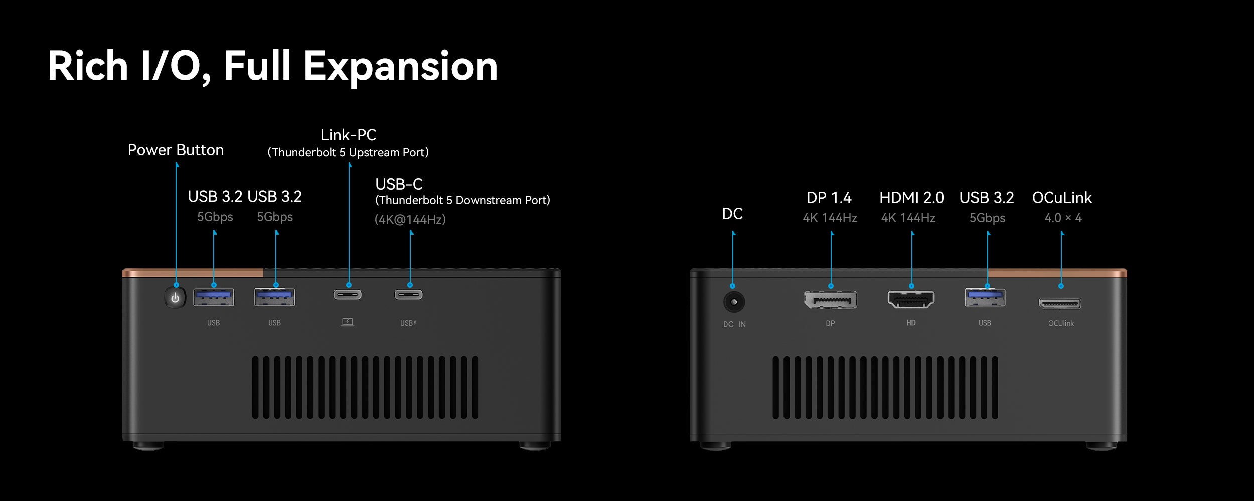 Er zal een bepaald niveau van prestatieverlies zijn, maar met OCuLink is dit meestal niet meer dan een kwart indien gekoppeld met een capabele host. Voor diegenen met een systeem zonder deze poort is er een Thunderbolt 5 poort, die ook werkt met de USB4 v2 interface.